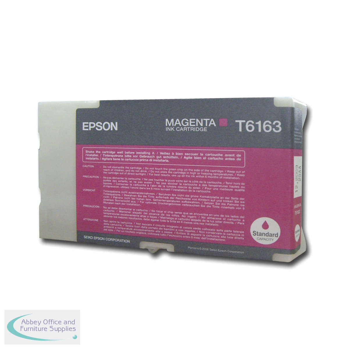 Install a genuine Epson T6163 Magenta High Yield Inkjet Cartridge for long-lasting results from your Epson B-500 series inkjet printer. Packed with enough ink to print 3,000 pages, it offers an economical, reliable alternative to laser printers in your business. It's packed with high quality DURABrite ink that reduces the risk of ugly smudges or blotting caused by water, ensuring documents remain bright and crisp.