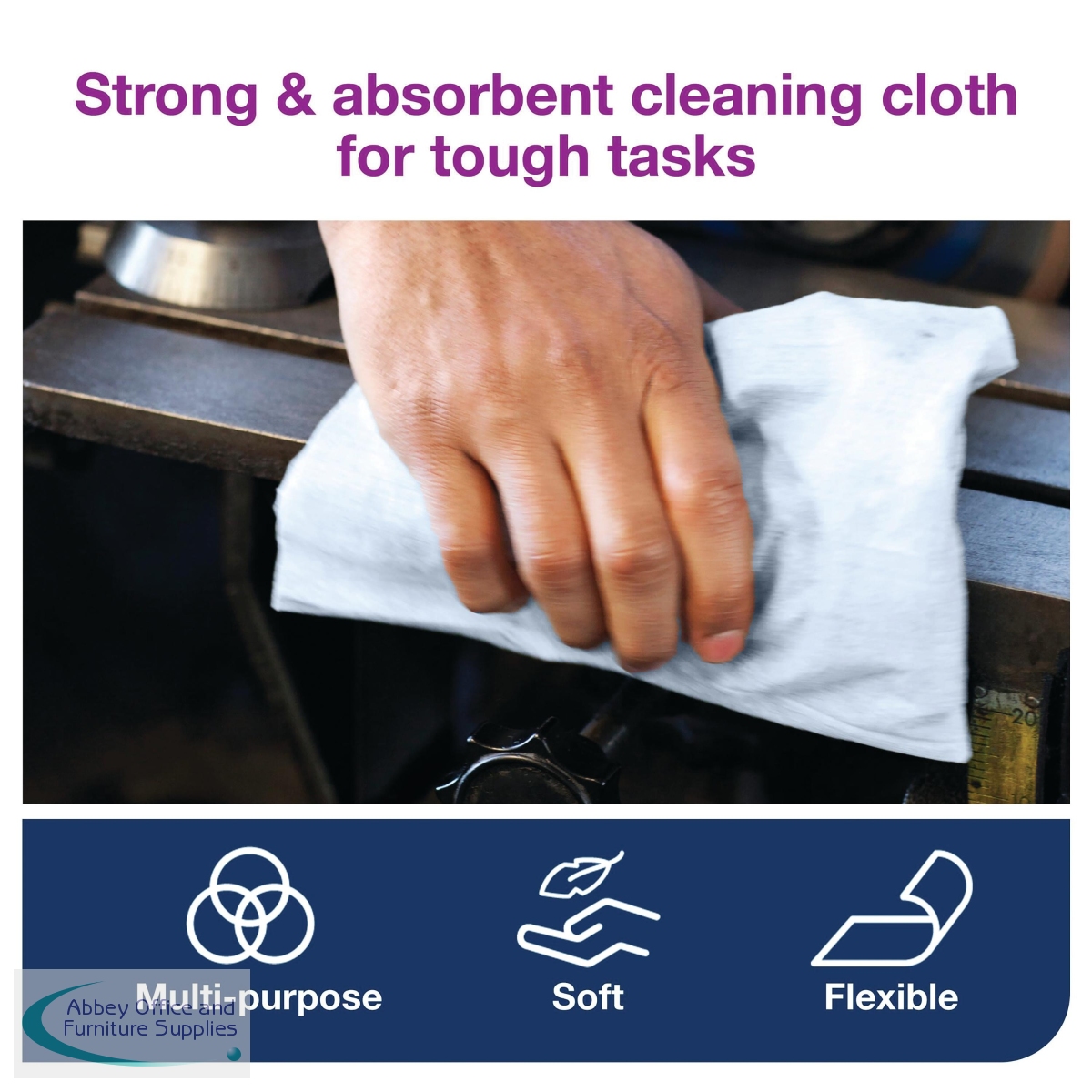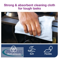 This multipurpose cleaning cloth is soft and flexible, yet strong and is suitable for repeated use. Compatible with most solvents, disinfectants and detergents, it is ideal for most lighter cleaning tasks and is absorbent, quickly soaking up liquids and oils. Designed for use with the Tork Maxi Centrefeed Dispenser or Boxed Combi Roll Dispenser for simple one-handed operation. It also fits the easy-to-load Tork Floor and Wall Stand dispensers, designed to save space in the workplace.