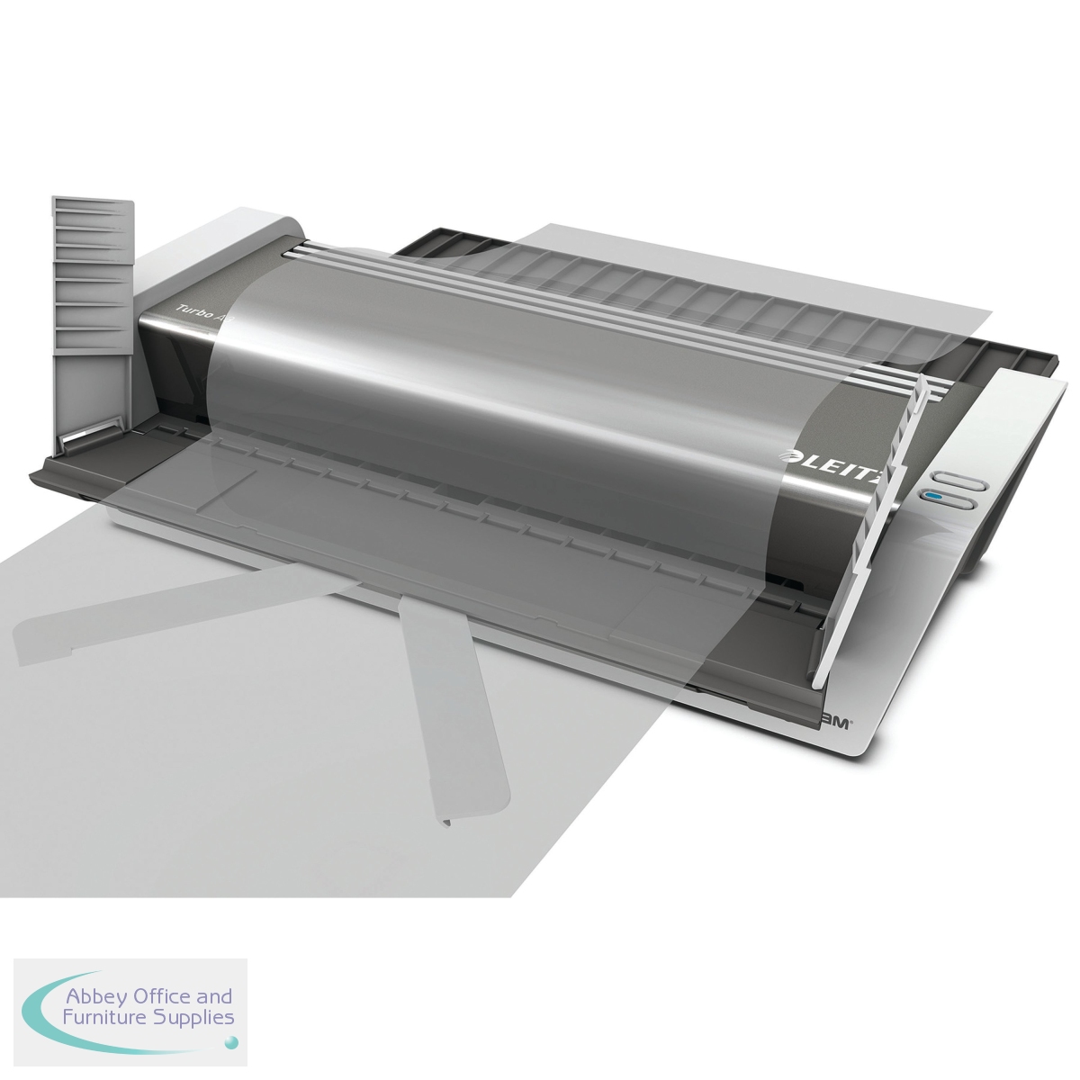 The Leitz iLAM Touch 2 Turbo A3 Laminator is a fully automatic, large scale, high speed machine for intensive professional use. With a warm up time of just 1 minute and an approximate speed of 20 seconds to laminate a 160 micron A4 pouch, this laminator will make quick work of your laminating requirements. Offering great ease of use, the iLAM Touch 2 Turbo features an auto-reverse function to prevent jamming, an automatic shut off function after 30 minutes of inactivity, and unique smart sensor technology that recognises document thickness and selects the best laminating speed. This machine accepts up to 500 micron thick pouches and laminates all sizes up to A3. Includes a free starter pack of pouches. 25 GBP / 25 Euros Cashback Claim at leitzcashback.eu.