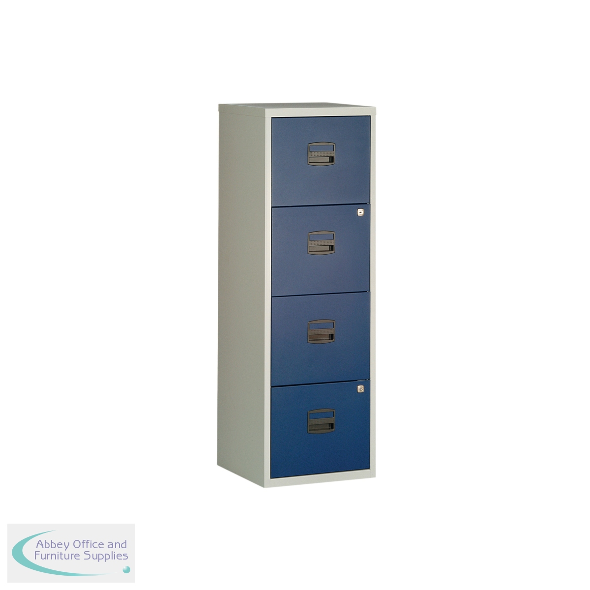 BY78729 - Bisley 4 Drawer Home Filing Cabinet A4 413x400x1282mm Grey/Blue BY78729