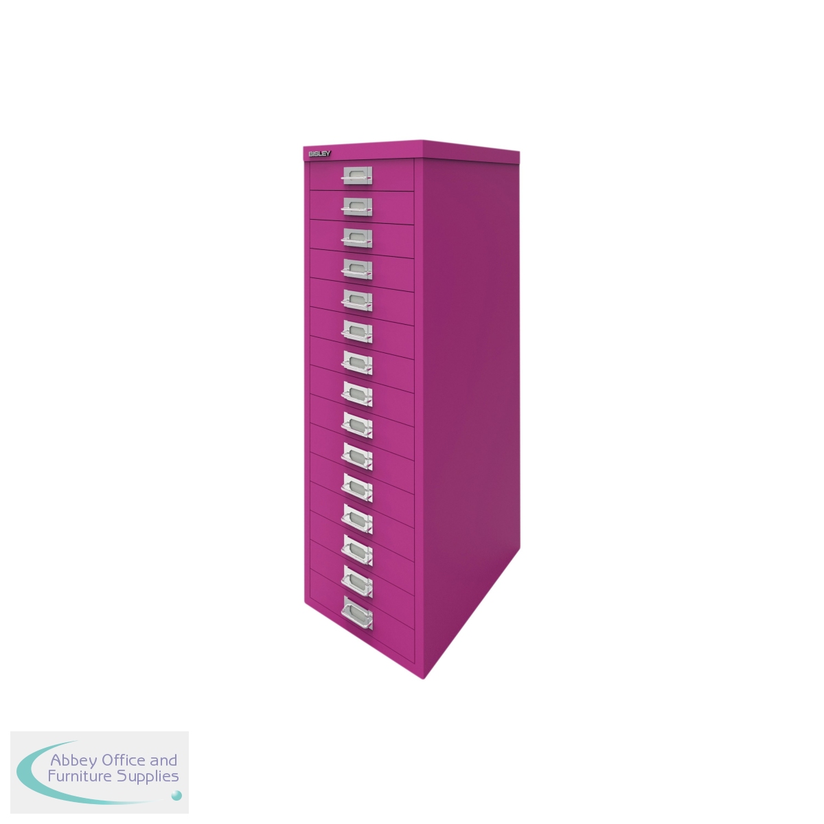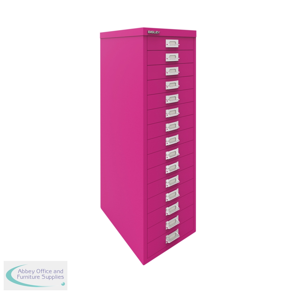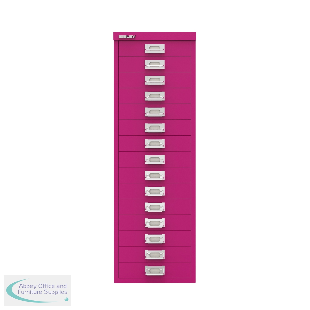 The Bisley 15 Multidrawer Cabinet is a robust and reliable choice for office storage. The smooth running multidrawers are 51mm deep and ideal for A4 filing, or storage of stationery and small items. Measuring 279x380x860mm, this cabinet comes in Fuchsia.