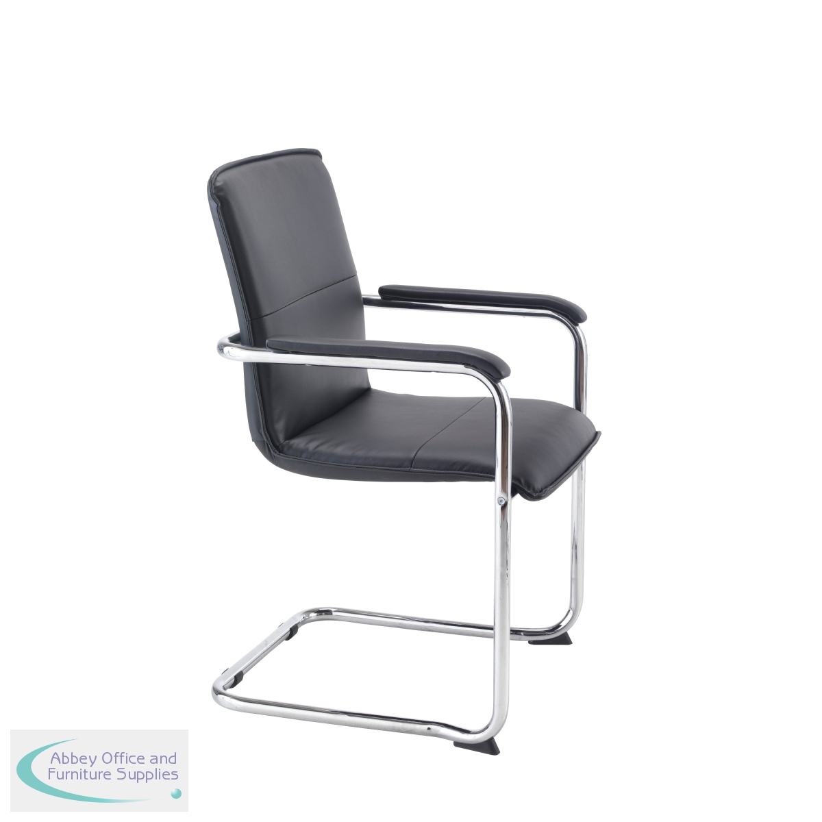 A professional looking visitor chair to suit a modern environment. The chair has fixed padded arms and a stylish chrome cantilever base with skid feet. Comes with a 5 year component guarantee and a 2 year upholstery guarantee.