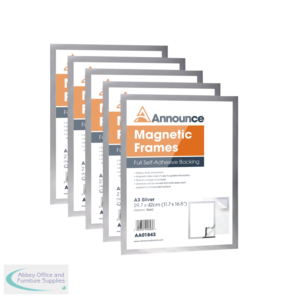 Easily display notice and information with this Announce Magnetic Frame. Ideal for use with in-company communication as well as public information, you can easily update information with the magnetic strip. It will stick on any non-porous surface and remove easily without leaving any residue.