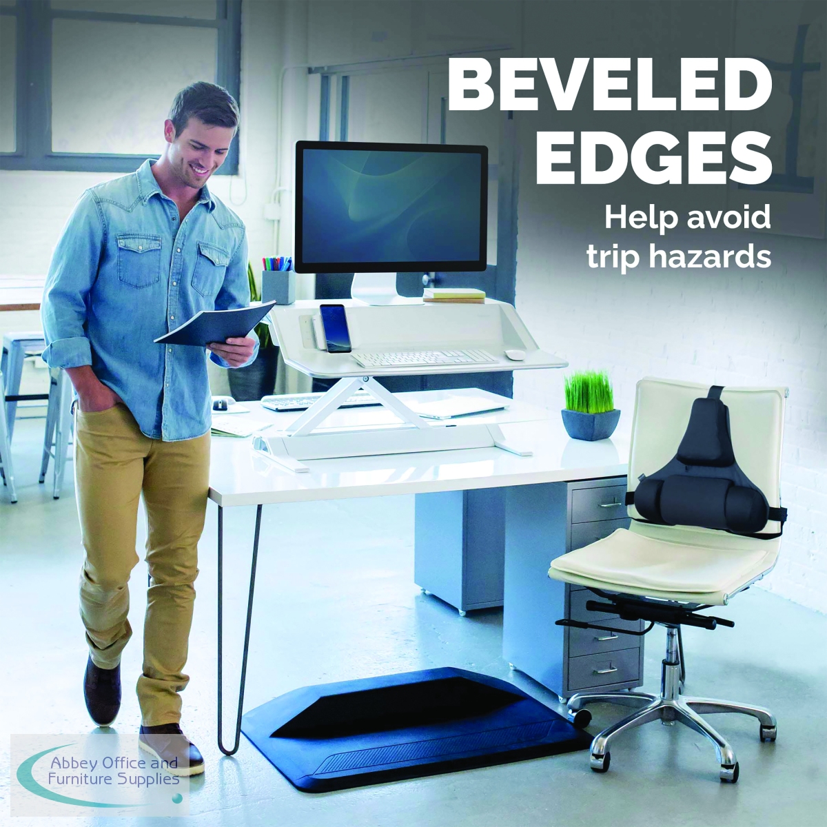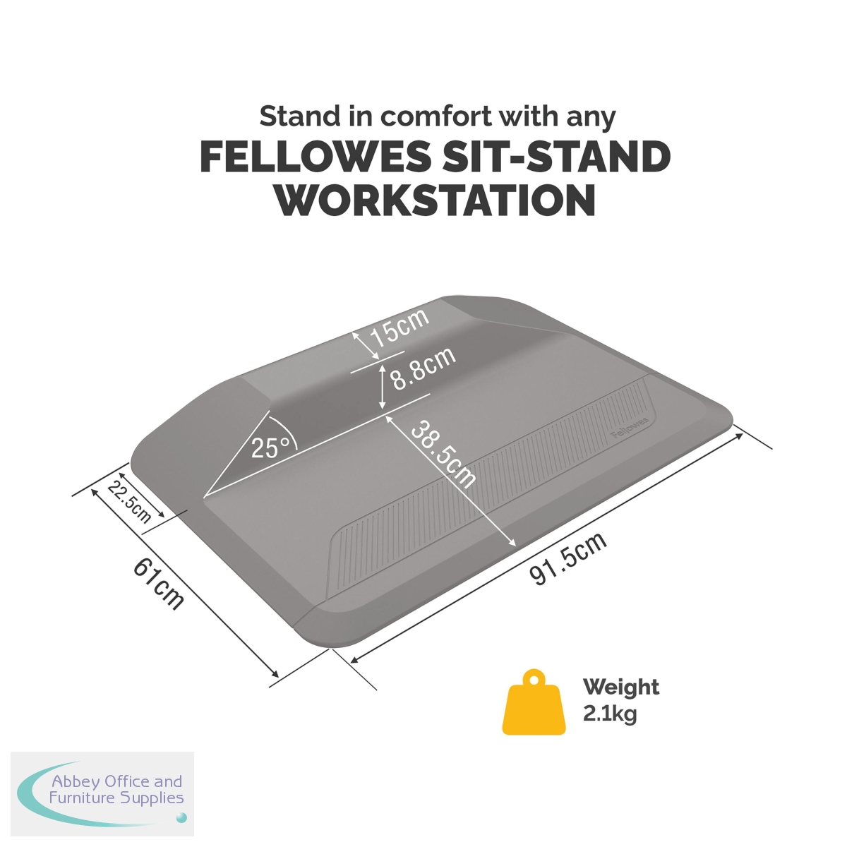Unique stepped design promotes stretching/encourages subtle movement. Helps to prevent fatigue. Bevelled edges to help avoid trip hazards. Dimensions: W915 x D610 x H89mm.
