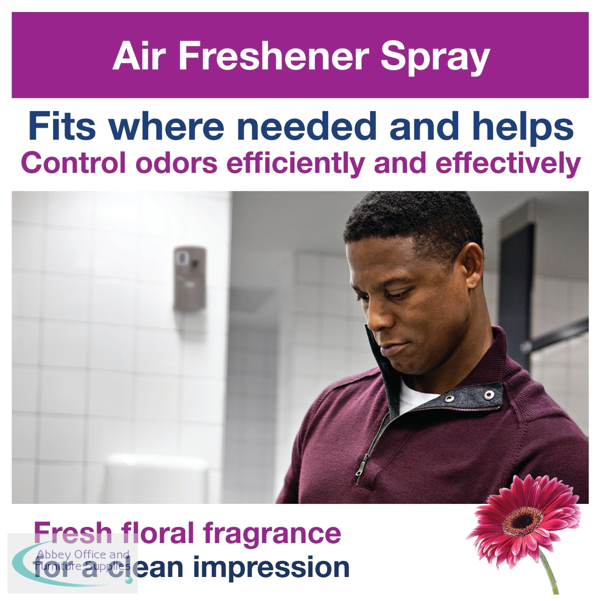 For use in the Tork A1 Air Freshener Spray Dispenser, this 75ml refill delivers 3,000 metred sprays for long lasting use. Designed for use in shared washrooms, the air freshener contains a concentrated fragrance oil and an odour neutralising agent to eliminate unpleasant odours and provide lasting freshness. This spray features a pleasant floral fragrance developed by a leading European perfumer.