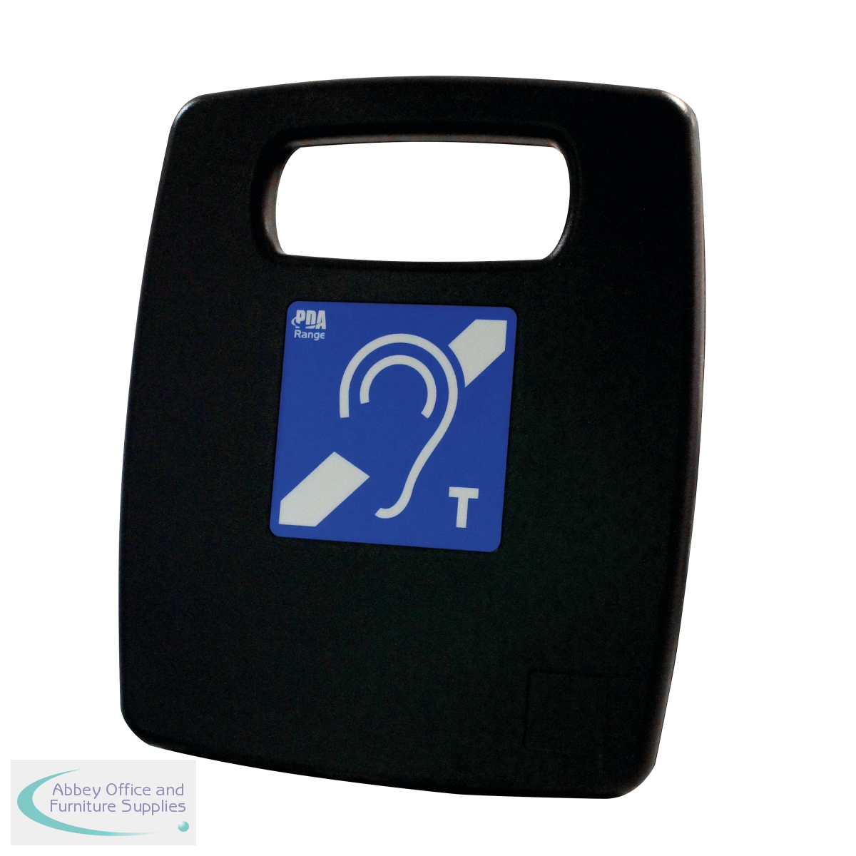 Ideal for use in meetings and at reception desks, this portable induction loop has a transmission range of approximately 1.5m. The rechargeable batteies provide up to 4 hours continuous use and the compact design is easy to transport. With a sensitivity rating of 60dB, this portable induction loop measures W150 x D57 x H160mm and comes in high visibility black.