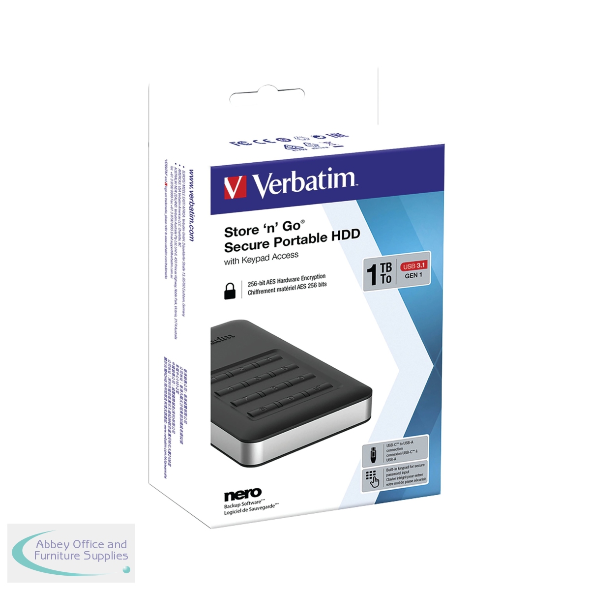 VM53401 - Verbatim Store N Go Secure Portable HDD USB 3.1 1TB 53401
