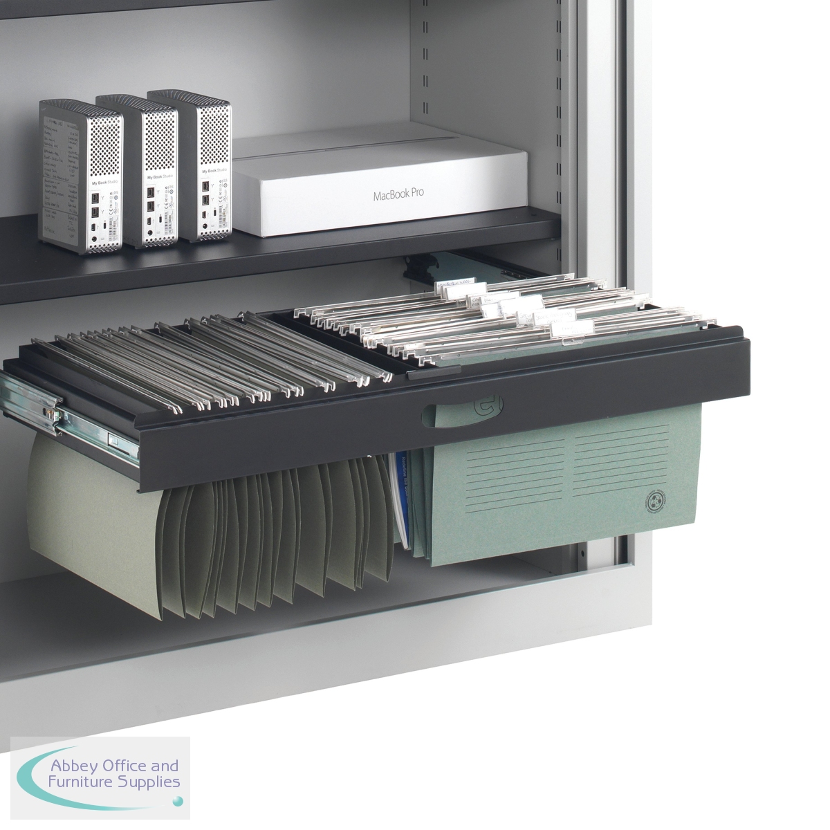 Designed for use with Talos side opening tambour cupboards, this optional roll out filing frame is for use with suspension files, and makes for easy filing and retrieval. Only includes filing frame.