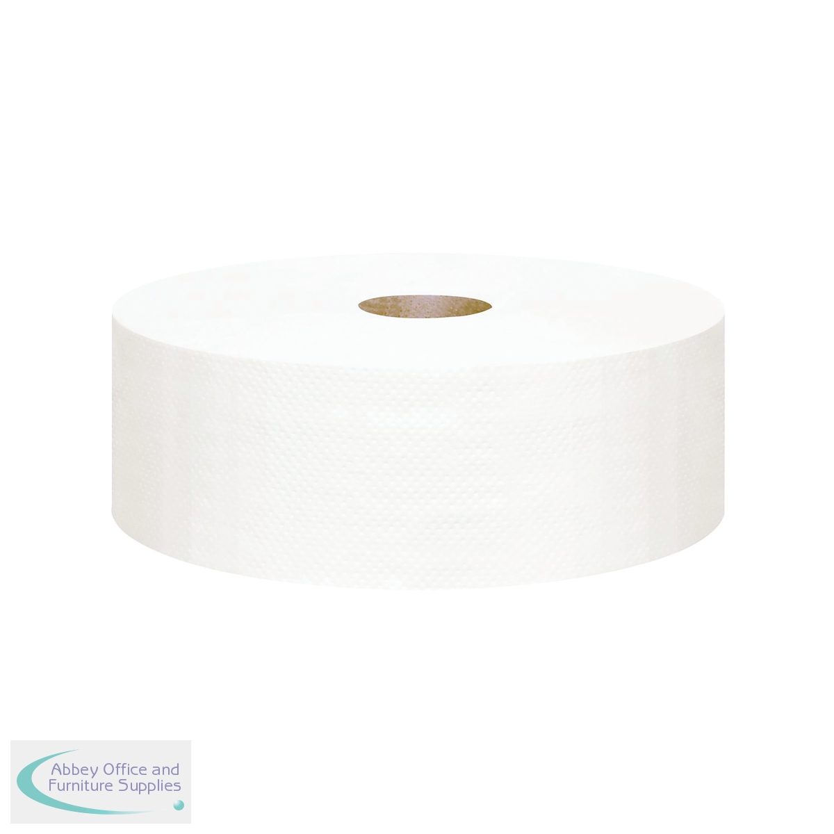 For use in Katrin Inclusive Gigant Toilet L Dispensers, these Katrin Plus Gigant Jumbo Toilet Rolls feature 2-ply white sheets for an extra soft, effective and quality toilet roll that is ideal for use in high traffic areas. The 300m long rolls help to reduce the number of times the dispenser needs refilling, and the high quality fibres makes the paper quickly and efficiently break down and dissolve in water. Pack of 6.
