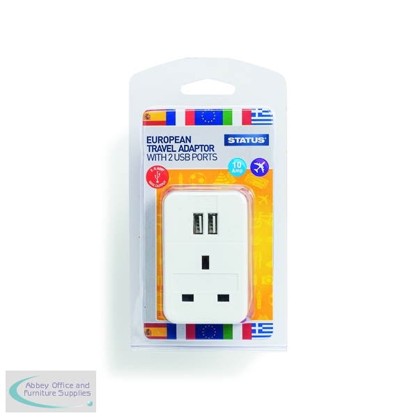STS7398 - Status European USB Travel Adaptor (3 Pack) S2USBPTEURO1PK3