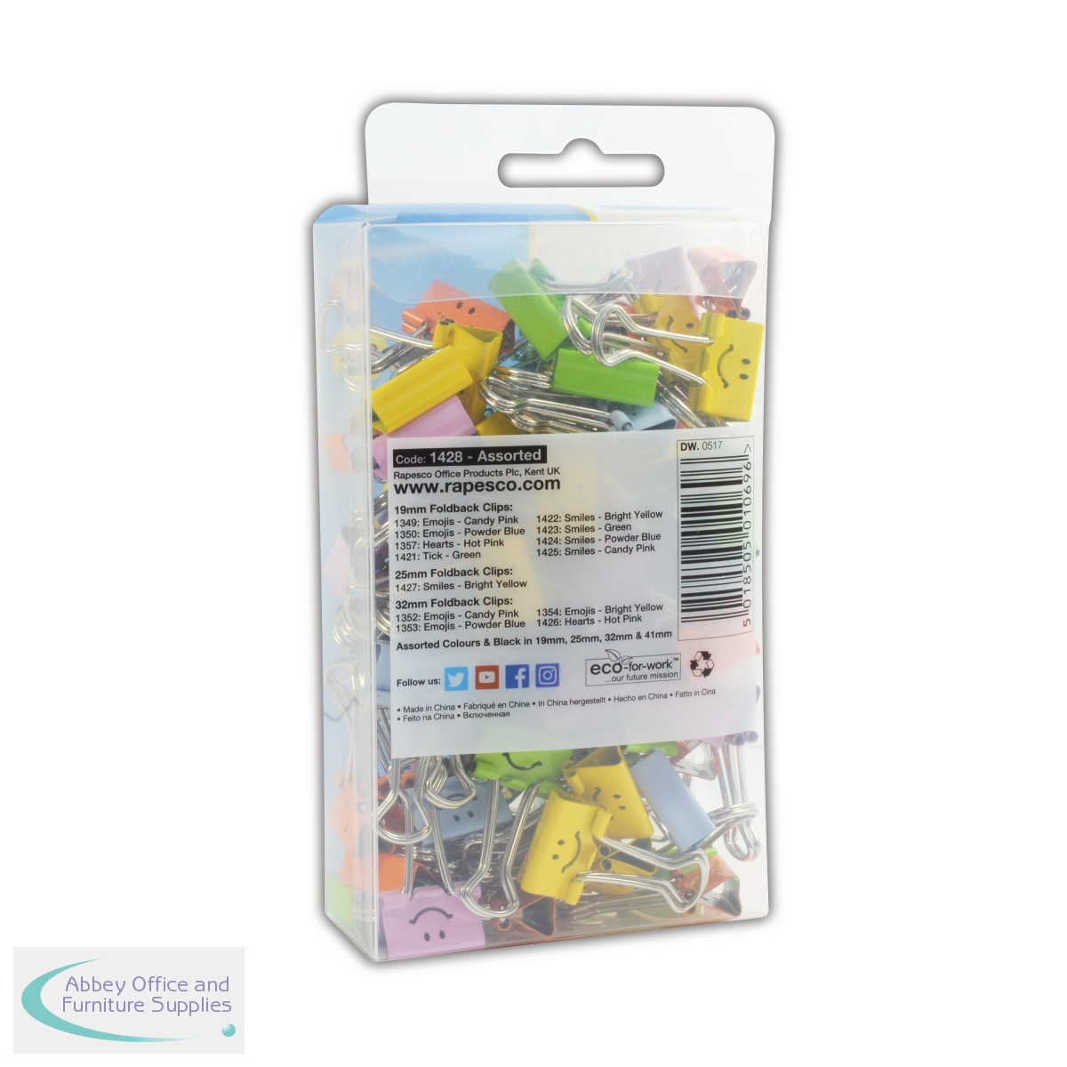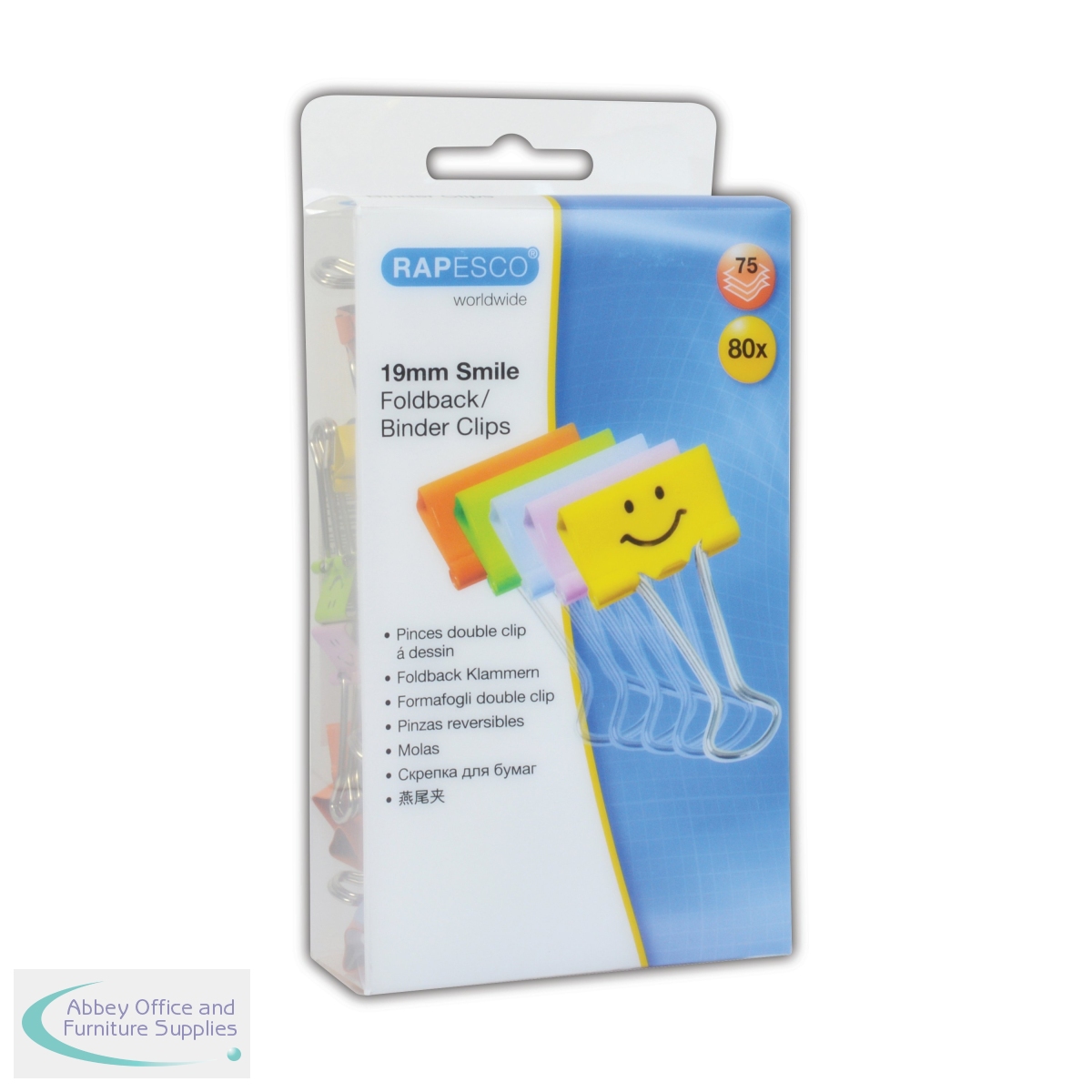 HT50106 - Rapesco Smiles Foldback Clip 19mm Assorted (Pack of 80) 1428