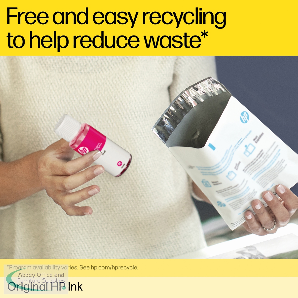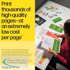 Print thousands of pages with one simple purchase of a set of Original HP high-yield ink bottles at an extremely low cost per page. Get high-volume printing, an easy and convenient way to replenish ink, and HP print quality and reliability.