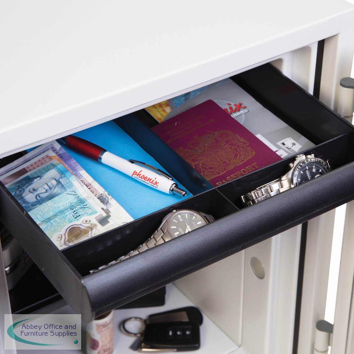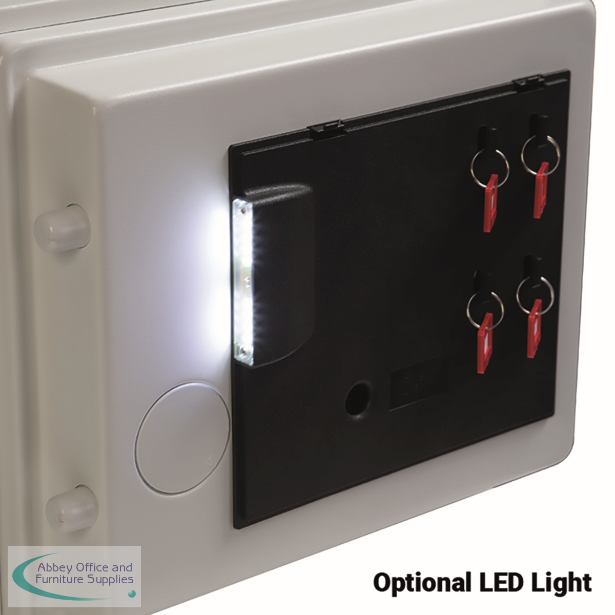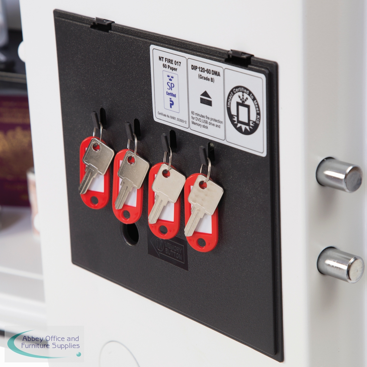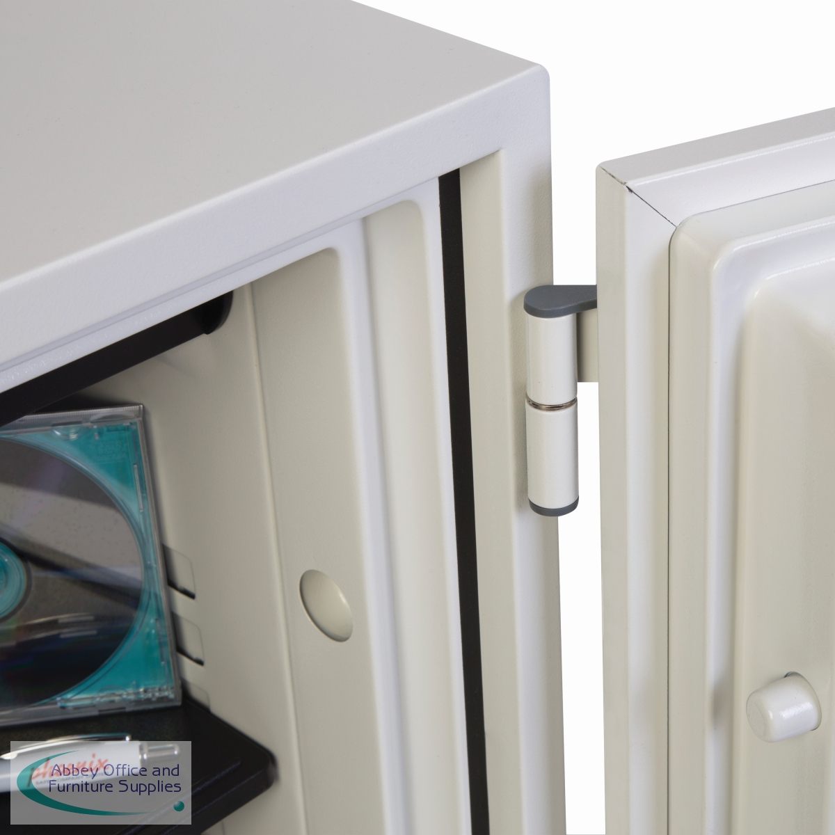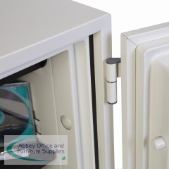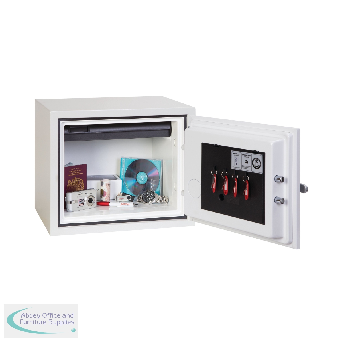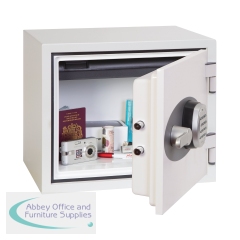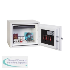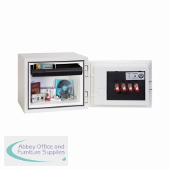 This Phoenix Titan 19 litre safe provides 60 minutes fire protection for paper and digital media. Fitted with a pull-out drawer and 4 key hooks. This safe has a high security electronic lock with convenient LED display, the safe also features dual control, hidden code and scrambled code as standard. Recommended for overnight cover of up to 2,000 GBP cash or 20,000 GBP valuables, the safe is ready prepared for floor fixing, with 2 fixing bolts for concrete floors supplied. The safe is drop tested to 9.1 metres for resistance to the impact of falling through the burning floors of a building. This white 19 litre safe measures W320 x D235 x H260mm (internal). Installation is available, price on application.