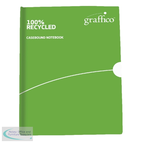 This environmentally friendly Graffico casebound notebook contains 160 pages of 100% recycled 60gsm paper. Ideal for use on the go, the A6 notebook features durable hard covers with sewn in pages, which are feint ruled for neat notes. This pack contains 1 notebook.