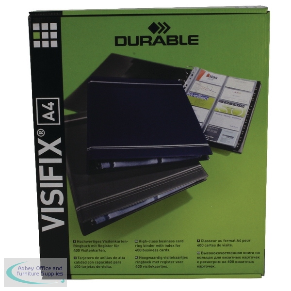 An attractive and practical business card album for organising and presenting up to 400 business cards from Durable. The folder features a 4 ring filing mechanism and a 12 part A-Z index allowing for easy filing and retrieval of business cards. Supplied with 20 protective card pockets. Seeing as this item has been formulated by the team at Durable, there are plenty of benefits to be enjoyed through its use.