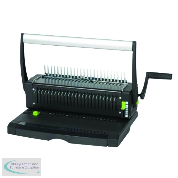 An ideal small or home office binder for presentations, professional documents and proposal documents, this Q-Connect professional comb binding machine has a double handed comb binder with manual punching facility. The 25 sheet punch capacity can handle portrait or landscape A4 documents, or landscape A3 sized documents, while the machine is able to bind up to 250 sheets at any one time. The binder can handle a binding ring up to 51mm.