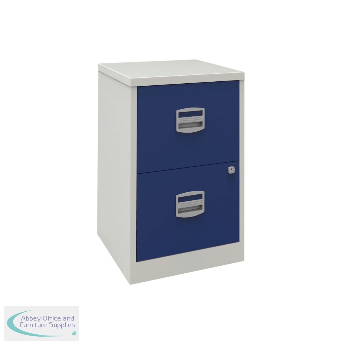 This Bisley Personal Filing Cabinet is great for home or small office use. It features 2 drawers for document storage and A4 filing, with a single action lock, to help keep confidential documents secure. The drawers feature ball bearing runners for smooth and effortless movement. Supplied with a grey carcass and stylish blue drawers, this filing cabinet measures 413x400x672mm and has a maximum capacity of 15kg.