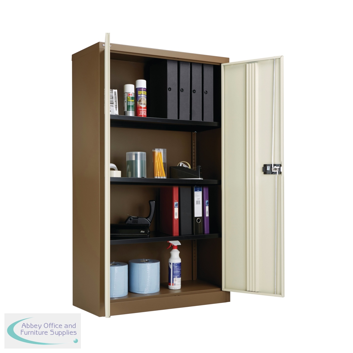 KF08082 - Jemini 2 Door Storage Cupboard Metal 420x960x1810mm Coffee/Cream KF08082