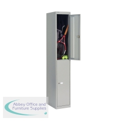 Bisley Lockers are a functional, yet stylish solution to personal storage in work or public spaces. This 2 Door locker comes with a hook for added convenience. The compartments have ventilation for air circulation and cam locks to help keep contents safe and secure. A label holder on each Door makes it quick and simple to organise these lockers or to assign them to specific people. This locker measures 305x305x1802mm and comes in Goose Grey. Contents not included.