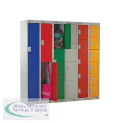 This steel locker is ideal for use in health, education, catering and dry area changing rooms. The Express locker can be delivered within 5 days depending on your postcode - please call for details. The locker has a powder coating for a chip resistant finish and a solid door fitted with a deadlock. This locker meets the requirements of BS4680: 1996 standard duty clothes lockers and has a light grey body with blue doors.