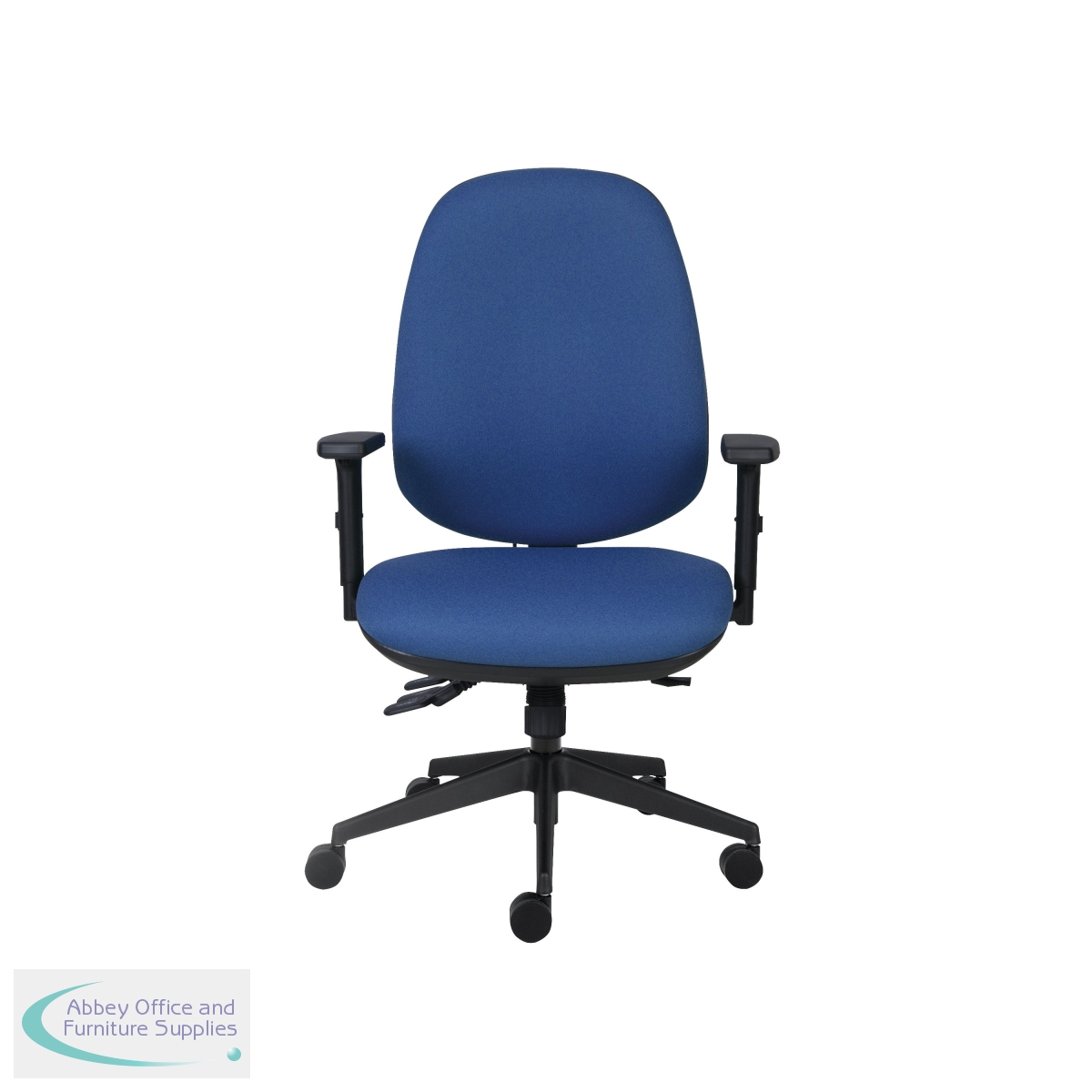 This luxurious and comfortable high back chair offers incredible support and helps to maintain posture. The upholstered, curved back rest and seat are fully adjustable to enable you to find your perfect sitting position. An easy to use gas lift mechanism and black arm rests offer additional support. This blue chair has a recommended usage time of 8 hours.
