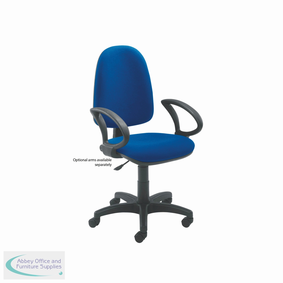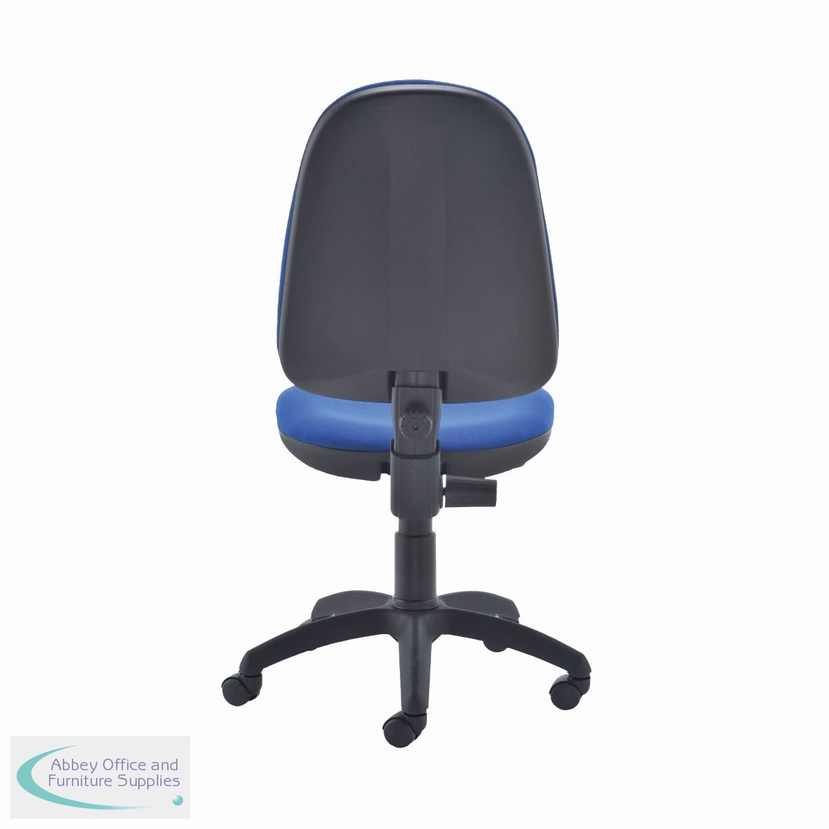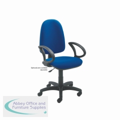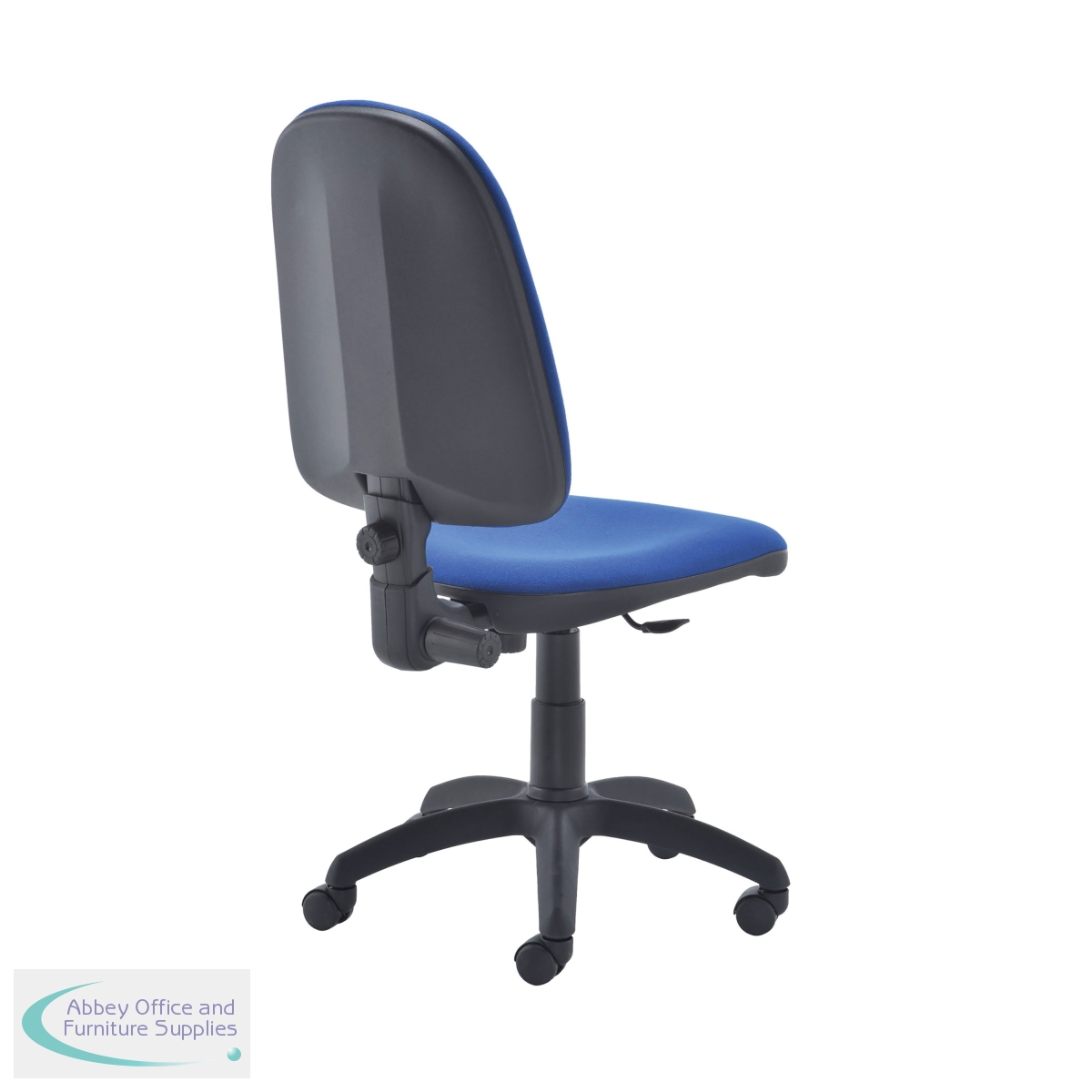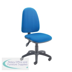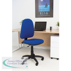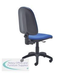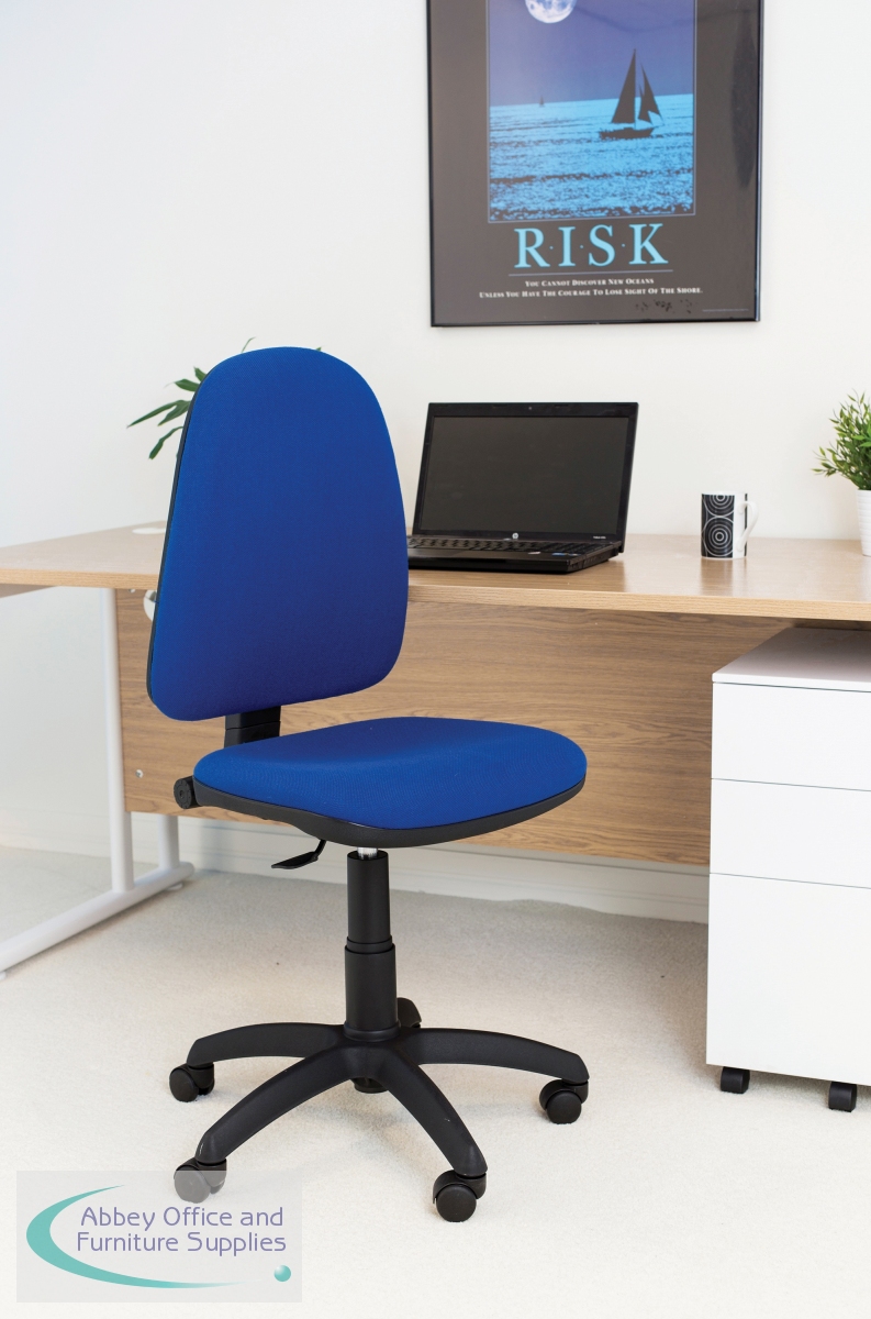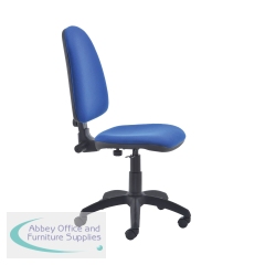 This entry level Jemini high back operator chair features a firm foam back and seat with a blue fabric covering. The seat and back height are adjustable, with an option for the angle of the back to be fixed or free floating. Recommended for up to 5 hours usage, this Jemini operator chair sits on five castors for ease of movement.