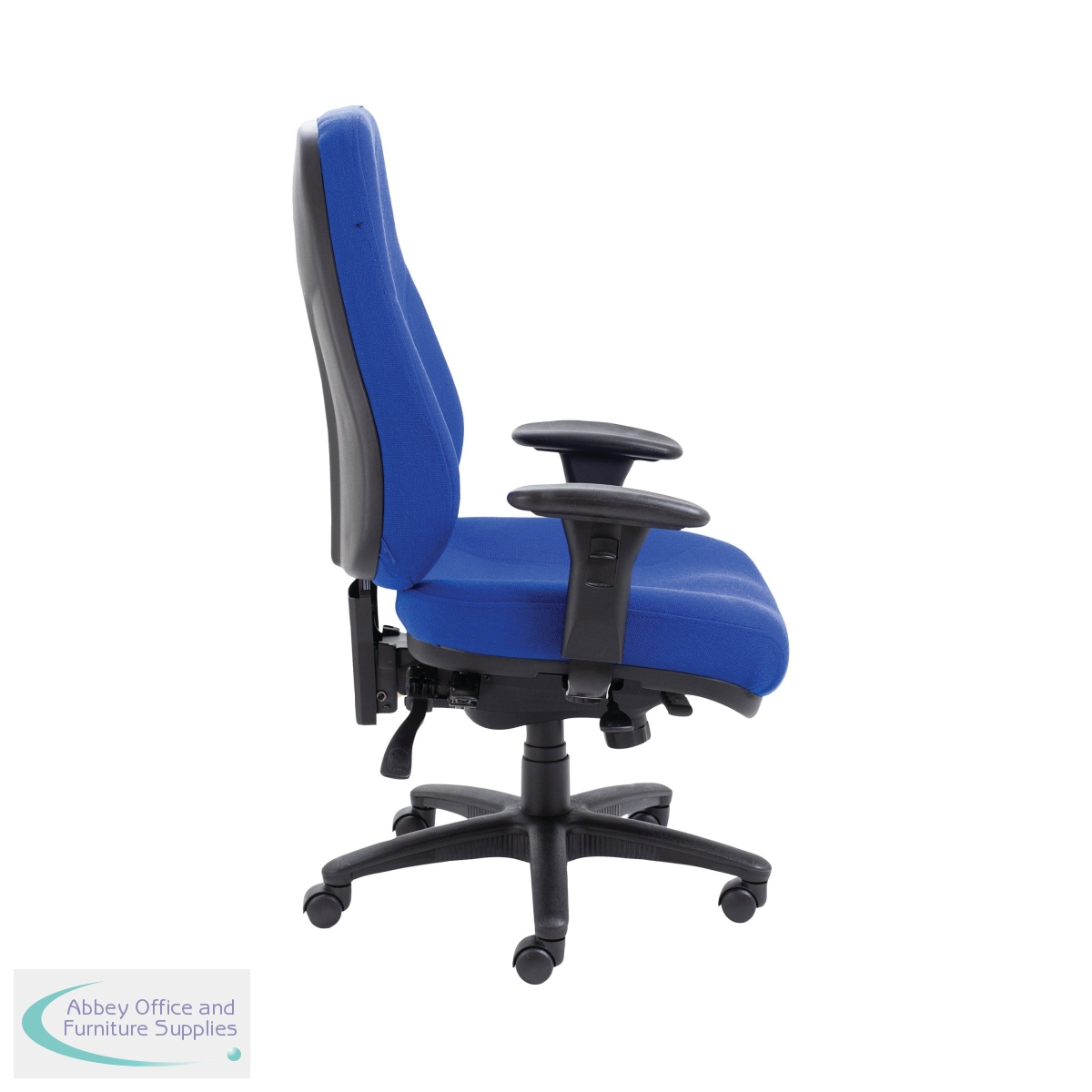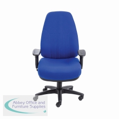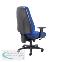 With a supportive high back and extra thick padded seat, the Lucania Task Chair in blue is ideal for heavy duty, 24 hour use. Designed for call centres, control rooms and other multi-shift environments, the versatility of the asynchro mechanism, where the height and tilt of both the seat and back are adjustable, means it is easier to find a comfortable seating position. Able to support sitters of up to 24 stone in weight, adjustable arms are included and an optional chrome base can be purchased for that finishing touch.