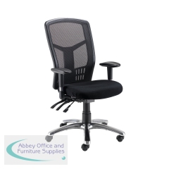 This heavy duty chair provides utility and comfort for 24 hour use. A high mesh back is lightweight and offers comfort for sitters up to 24 stone in weight. Adjustable arms are included and the chair also features asynchro adjustment of seat and back height, and angle for ultimate comfort in multi-shift environments. Ideal for call centres and control rooms this chair comes in black.
