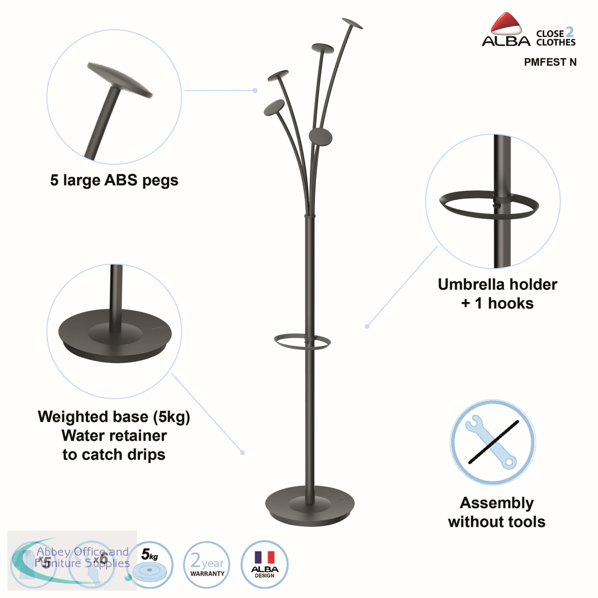 ALB00865 - Alba Festival Coat Stand 350x350x1870mm Black PMFESTN