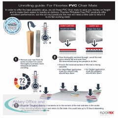 Floortex's Advantagemat's help make your desk work space more ergonomic, by taking strain off of your legs and back, this is done by providing an easy-glide surface. The key reason chair users purchase floor mats is to protect a small or large area of flooring from indentations and scuffs caused by rolling office chairs, along with dirt and spills, therefore extending the life of your surface.