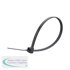 These cable ties are ideal for bundling wires, securing packaging, security tagging and more, and are great for use in retail and industrial environments. The hard-wearing cable ties are high strength and can withstand high heat and harsh conditions. Each cable tie is a one piece, moulded mechanism with no sharp edges for easy handling. These cable ties measure 150x3.6mm, with a tensile strength of 18.2kg and a 33mm maximum bundling diameter. This pack contains 100 black cable ties.