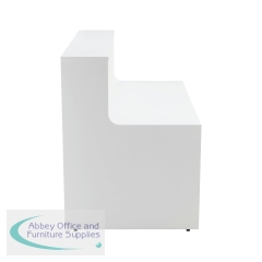 With clean and elegant lines, this Jemini Reception Unit is ideal for use in a variety of reception areas. The modular design features a panel end construction incorporating a fixed riser unit. The unit has a sturdy 25mm thick desktop. This reception unit measures 1600x800x740mm and is finished in White.