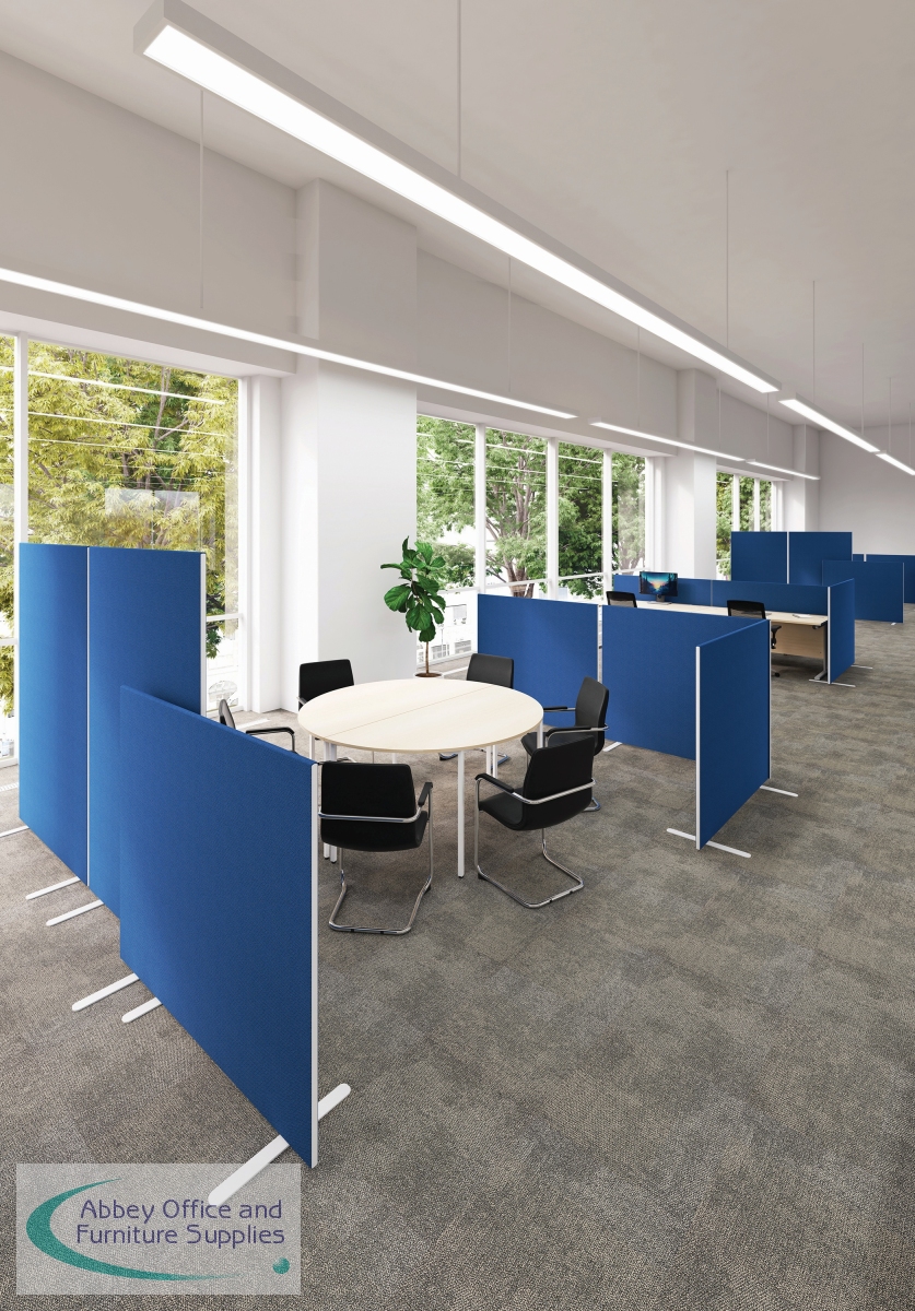 Provide privacy and reduce noise levels between desks with this Jemini Floor Standing Screen. In a simple black, the screen is upholstered with Elfin flame retardant fabric with a protective uPVA edge trim. This screencomes with a pair of standard feet.