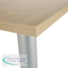 This Jemini Rectangular Meeting Table is ideal for use in meeting, training rooms and breakout areas. Combine with other tables in the range to form a configuration that suits you. The desk features four tubular metal legs with a 25mm thick MFC desktop finished in maple. This table measures 1600x800x730mm.
