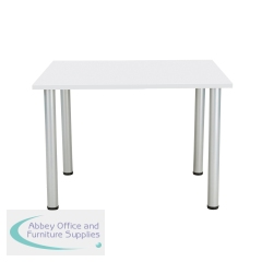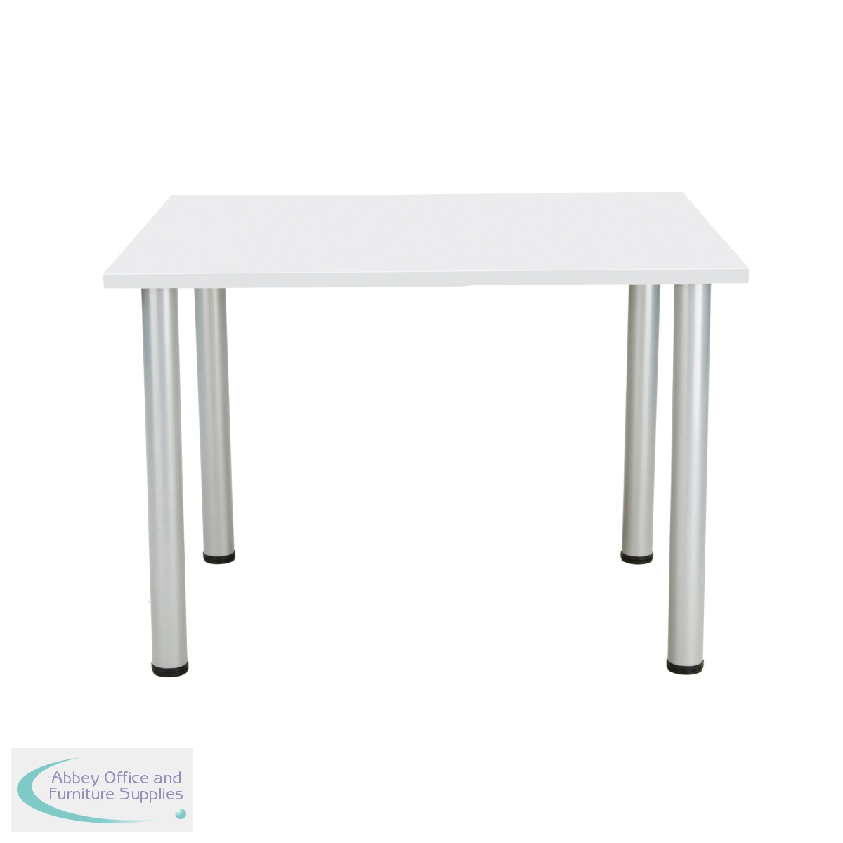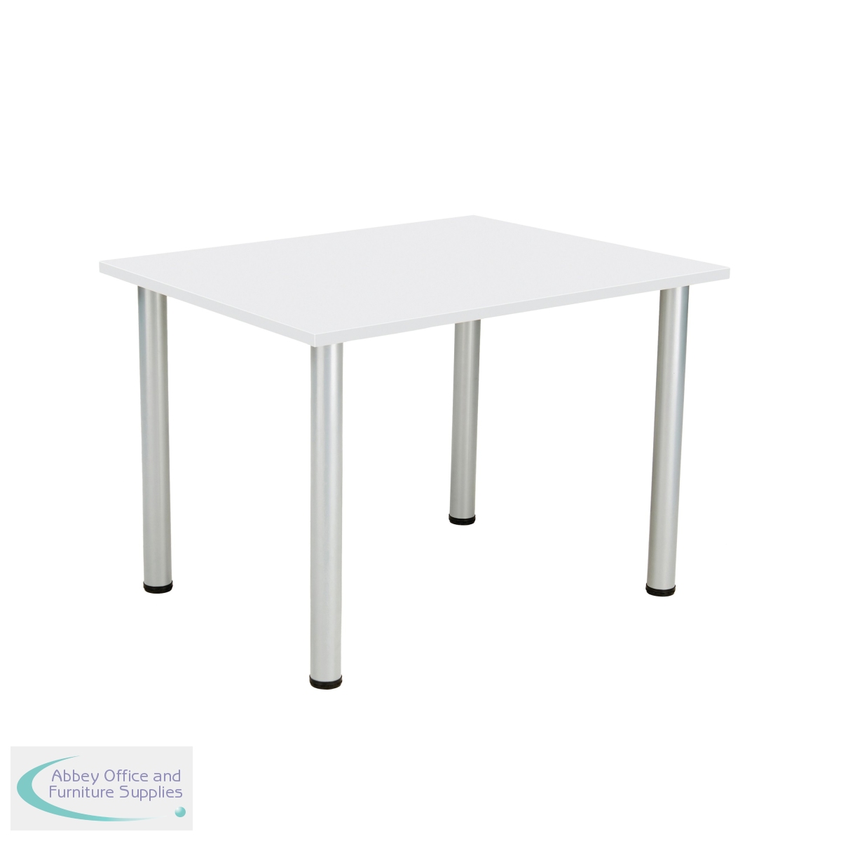 This Jemini Rectangular Meeting Table is ideal for use in meeting, training rooms and breakout areas. Combine with other tables in the range to form a configuration that suits you. The desk features four tubular metal legs with a 25mm thick MFC desktop finished in white. This table measures 1200x800x730mm.