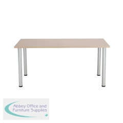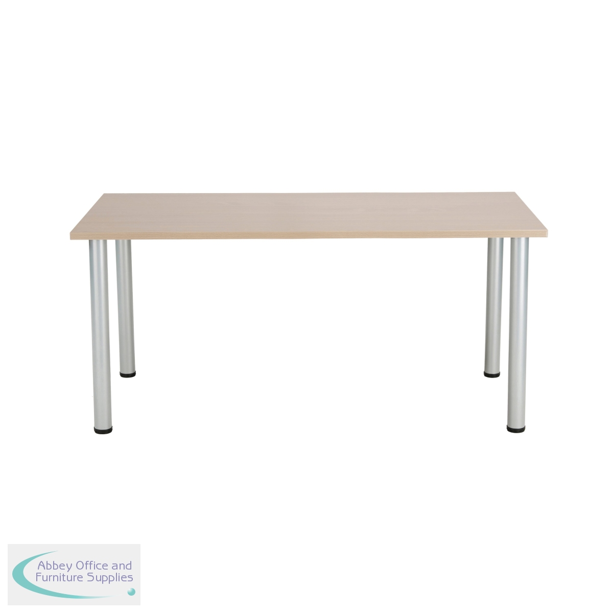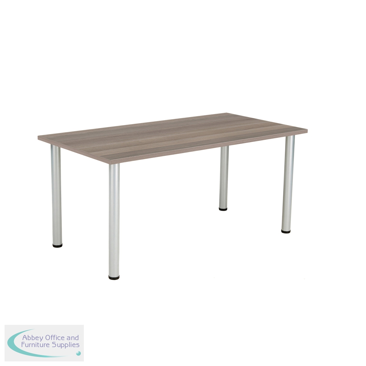 This Jemini Rectangular Meeting Table is ideal for use in meeting, training rooms and breakout areas. Combine with other tables in the range to form a configuration that suits you. The desk features four tubular metal legs with a 25mm thick MFC desktop finished in Grey Oak. This table measures 1600x800x730mm.