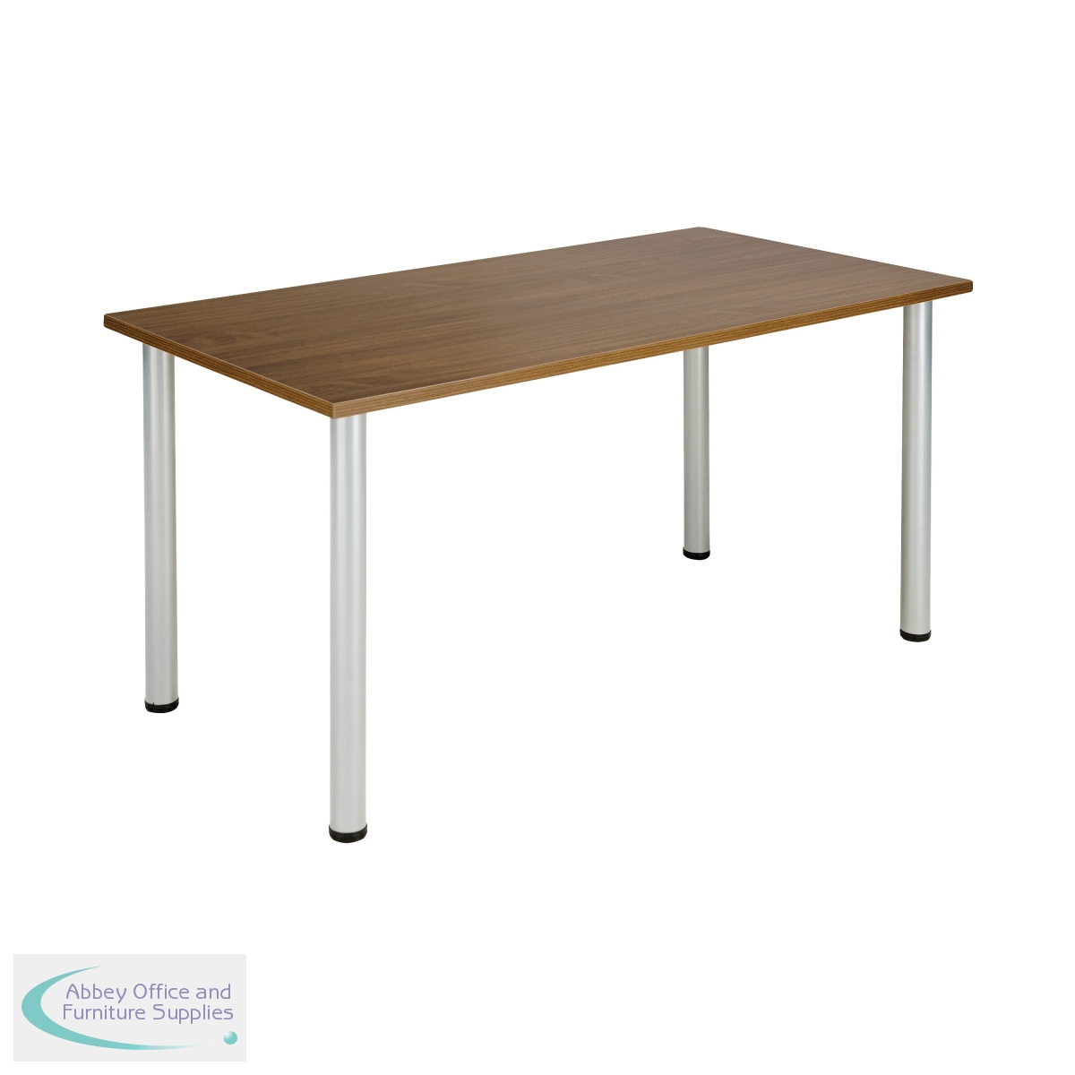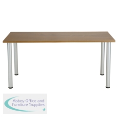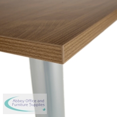 This Jemini Rectangular Meeting Table is ideal for use in meeting, training rooms and breakout areas. Combine with other tables in the range to form a configuration that suits you. The desk features four tubular metal legs with a 25mm thick MFC desktop finished in walnut. This table measures 1800x800x730mm.
