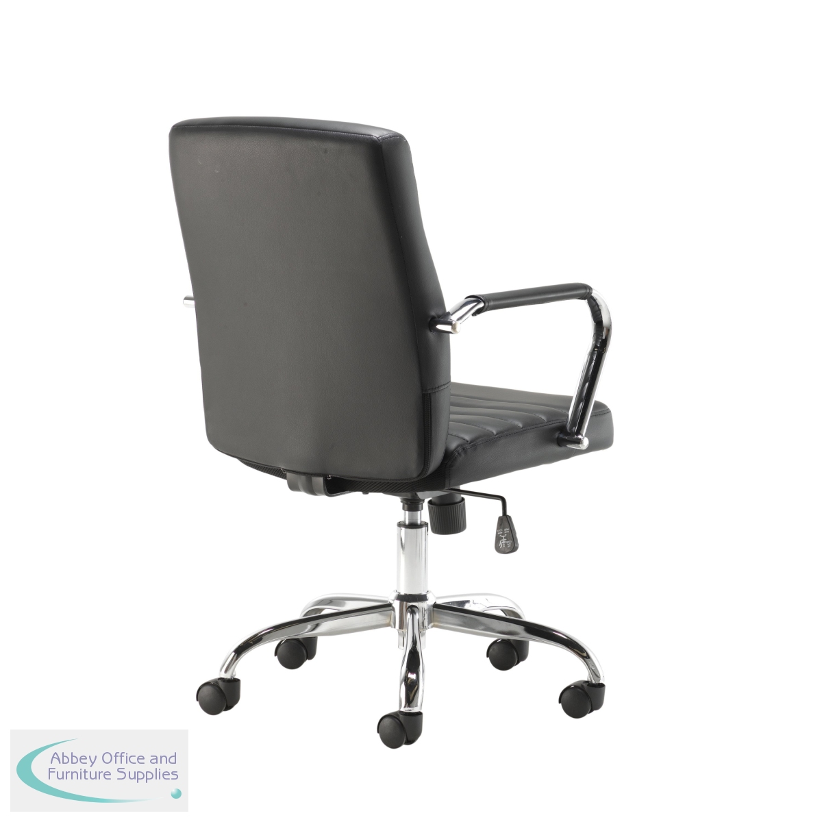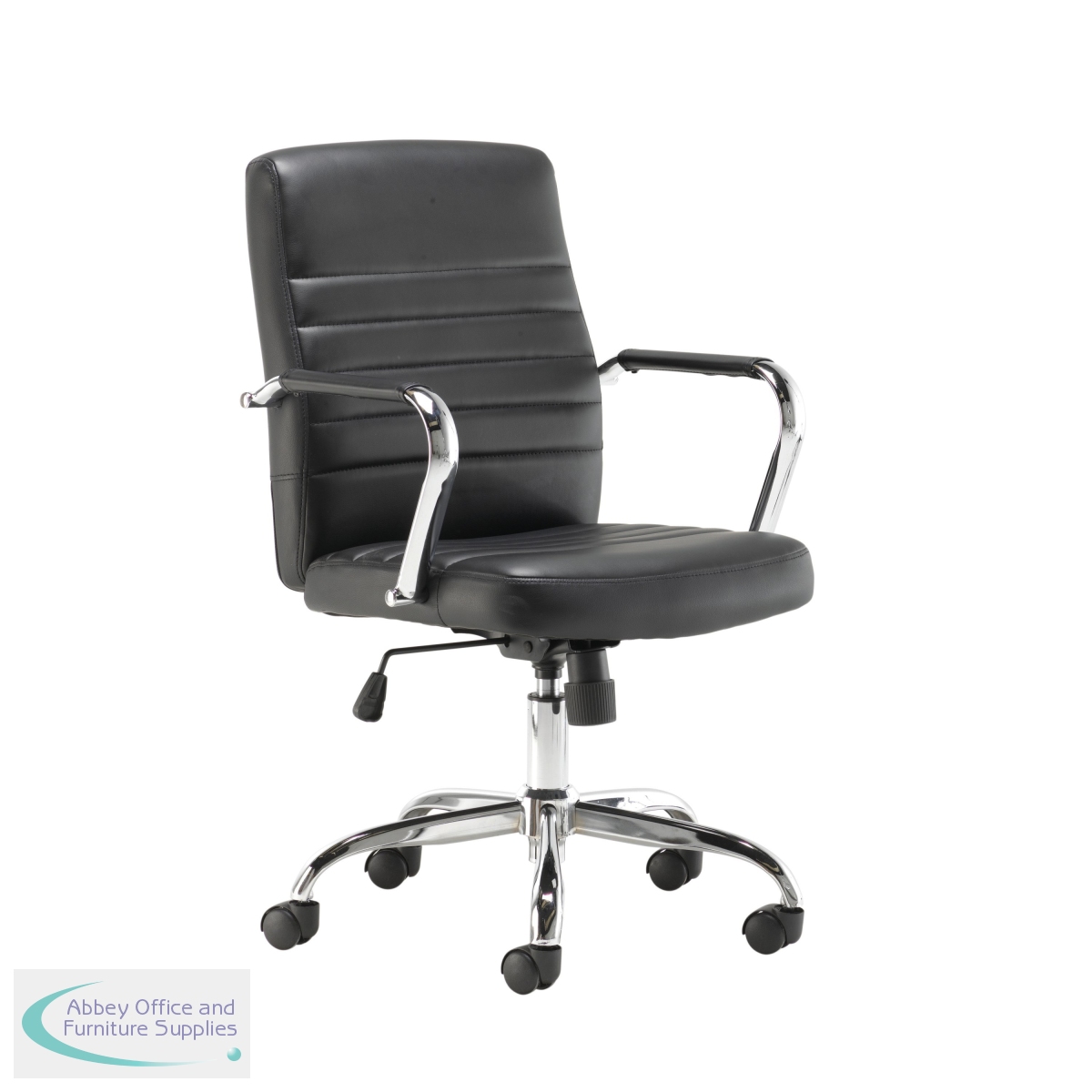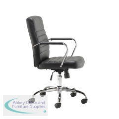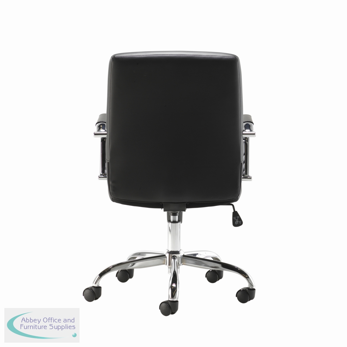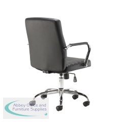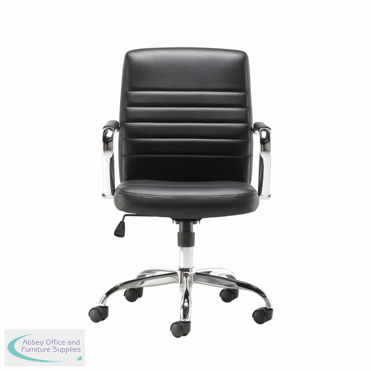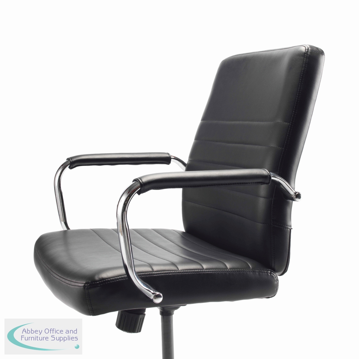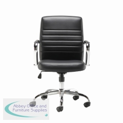 This stylish Jemini Amalfi Leather Look Meeting Chair features integrated chrome armrests and a five star chrome base for mobility. The seat height is adjustable from 440mm to 530mm. This black chair has a maximum sitter weight of 18 stone.