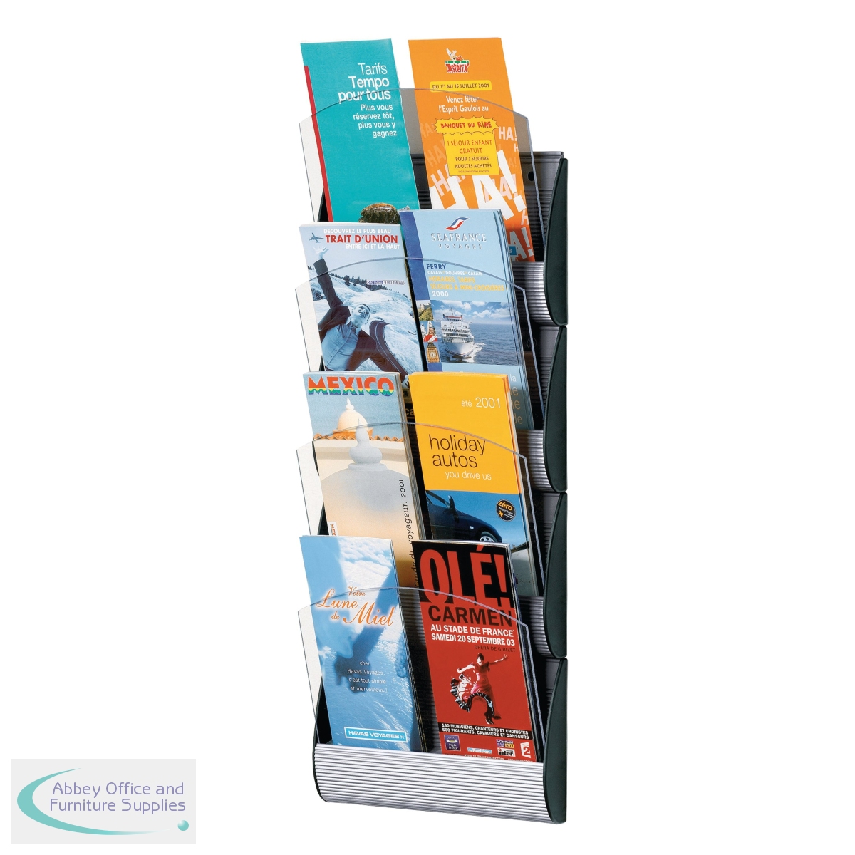 A stylish way to display your leaflets and brochures, this wall mountable display system from Fast Paper features four shelves with glass frontage, making the documents easily visable beneath. Each shelf can perfectly hold and display A5 Sized literature.