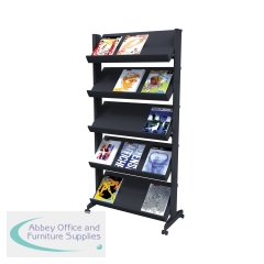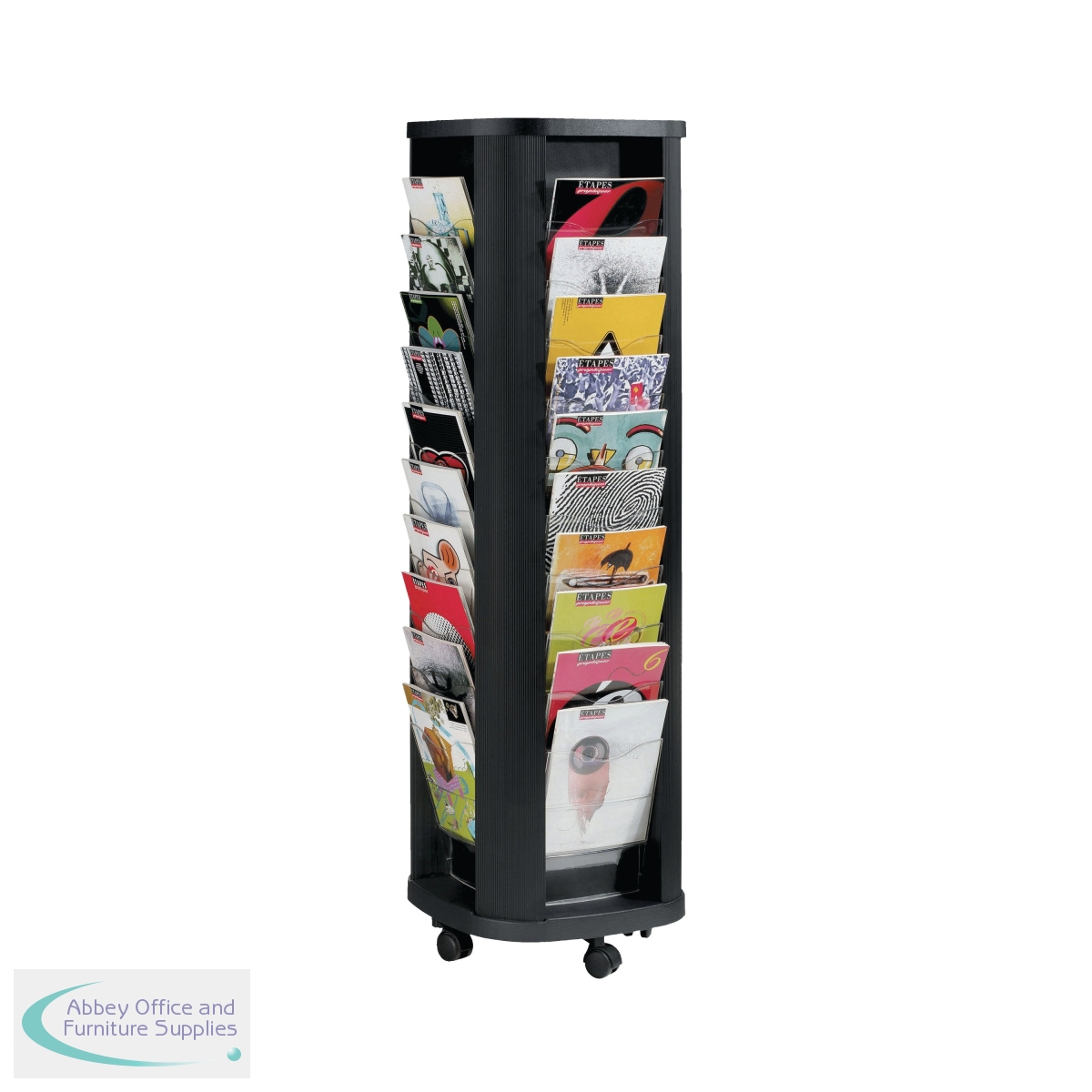 Great for conferences, receptions, waiting rooms and more, the Fast Paper Mobile Carousel Literature Display lets you display a wide range of magazines, catalogues, journals and more for your visitors. With 40 compartments, the carousel function allows you to view all four sides with ease for maximum capacity and visibility of A4 magazines, journals and more. The sleek black design will suit any office enviornment. Durability is provided by a metal frame sitting on four castors, ensuring easy mobility for a flexible arrangement.