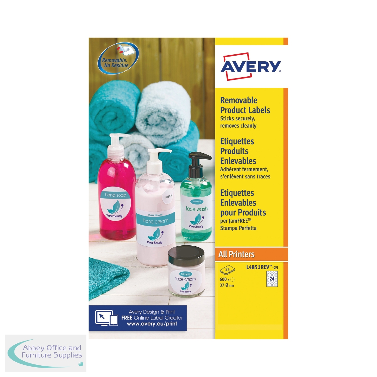 Designed for use with all printers, these Avery removable labels stick securely to almost any surface and can be removed or repositioned without leaving sticky residue. JamFree technology has been developed for these labels to optimise them for smooth, uninterrupted use with your printer. Try Avery's free software and templates to design professional looking labels. These round labels are 37mm in diameter and this pack contains 25 sheets with 24 labels per sheet (600 labels in total).