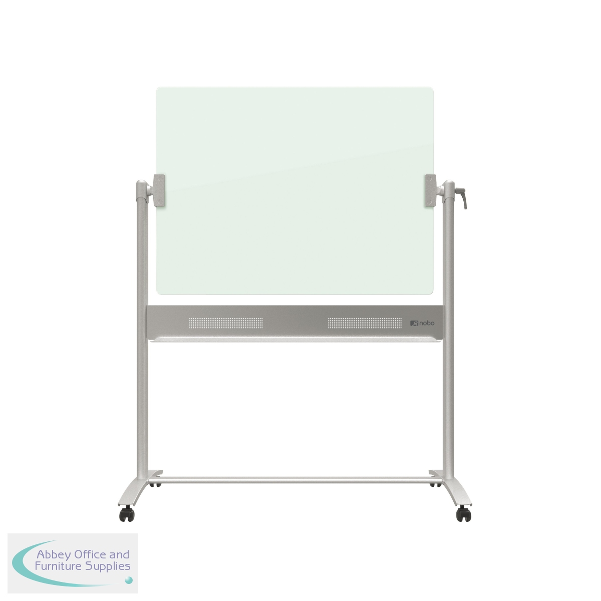 This dual-sided Nobo Diamond mobile board features a magnetic, tempered safety glass surface, which is suitable for frequent use. The surface is 3 times easier to clean than melamine or enamel boards, with superior erasability and a high resistance to ink stains, pen marks, scratches and dents. The board comes on 4 castors for mobility and can be pivoted horizontally for easy access to both sides. The board measures 1200 x 900mm and comes supplied with a large pen tray, Nobo pen and a set of Nobo extra strong glass board magnets.