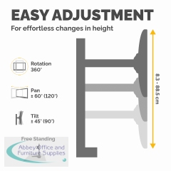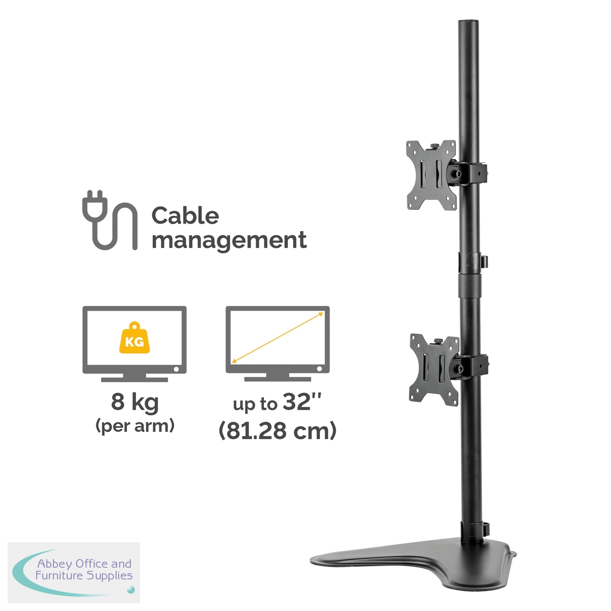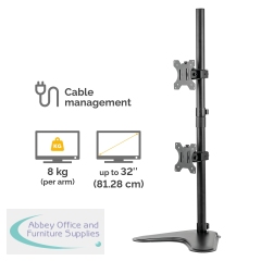 This innovative Fellowes Professional Series monitor arm has a free standing, stacking design for 2 monitors. The portable design can be used without the need for a clamp or grommet mount. For use with monitors up to 32 inches, the arm has a maximum weight capacity of 8kg. The base is weighted for stability and the monitor arm also includes an integrated cable management system for organisation.