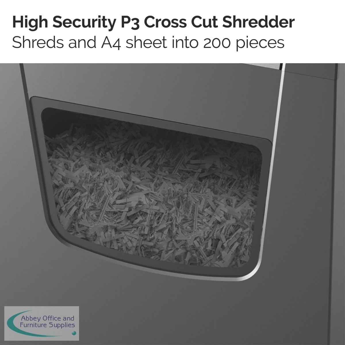 Rexel Momentum X312-SL Slimline Paper Shredder shreds up to 12 sheets in one go, with a 6 minute continuous run time and a slimmer design making it ideal for home use. The Slim X312-SL comes with anti jam technology to guarantee uninterrupted shredding. With P-3 security which cross-cuts 5 x 42 mm pieces, the shredder is quiet, with simple, intuitive, touch control buttons for easy operation and a generous 23 Litre bin capacity (200 A4 sheets).