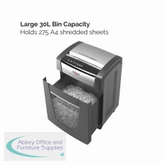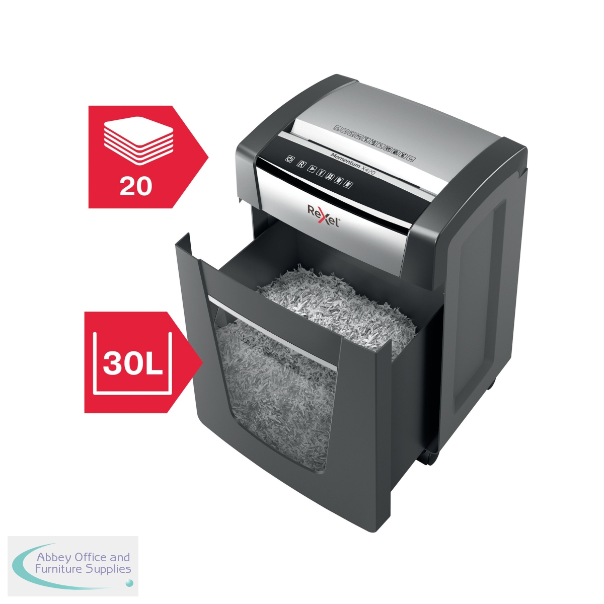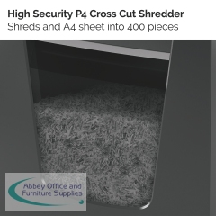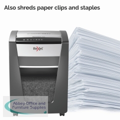 Rexel Momentum X420 Paper Shredder shreds up to 20 sheets in one go, with a 4 hour continuous run time, making it ideal for a small office. The X420 comes with anti jam technology to guarantee uninterrupted shredding. With P-4 security which cross-cuts 4 x 40 mm pieces, the shredder is quiet, with simple, intuitive, touch control buttons for easy operation and features a generous 30 Litre bin capacity (275 A4 sheets).