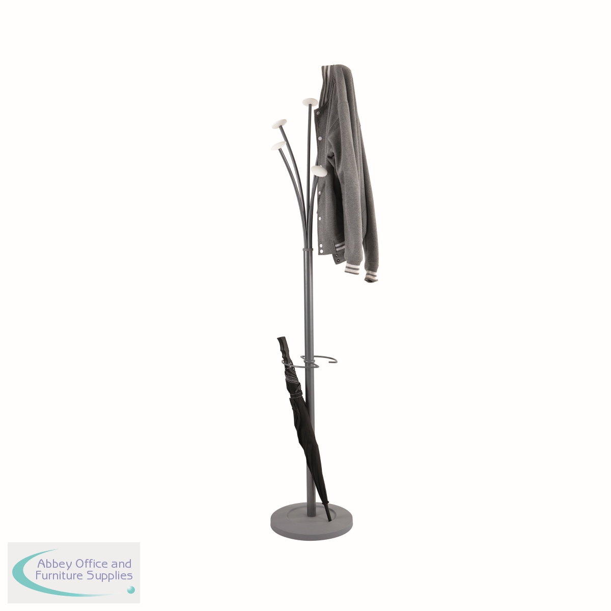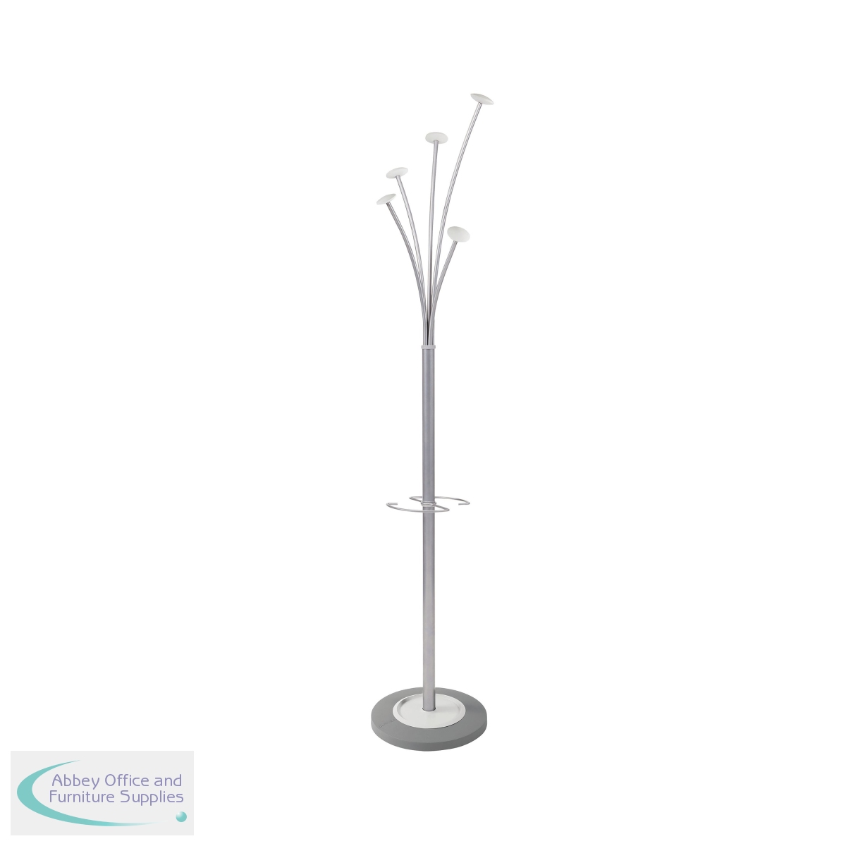 ALB14293 - Alba Festival High Capacity Coat Stand with Umbrella Holder 350x350x1870mm Silver/White PMFESTY2BC