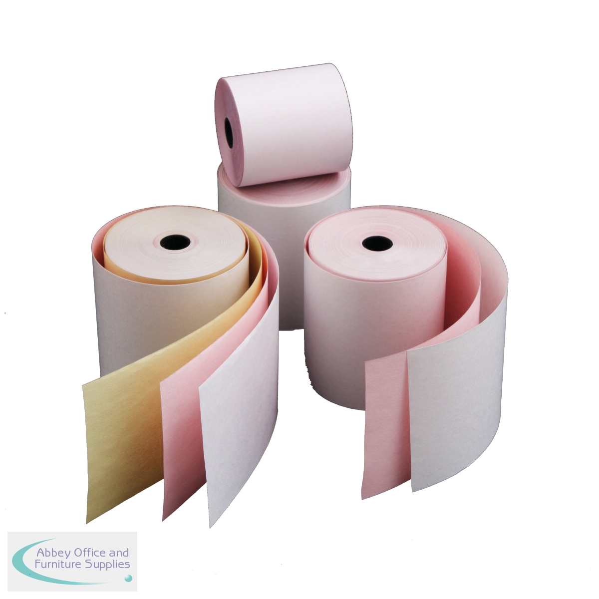 Prestige Till Rolls 2-Ply are BPA free. Width: 76mm. Ideal for use with your cash register. Measuring 76mm in width, they are 2-ply with a white upper and a pink reverse.