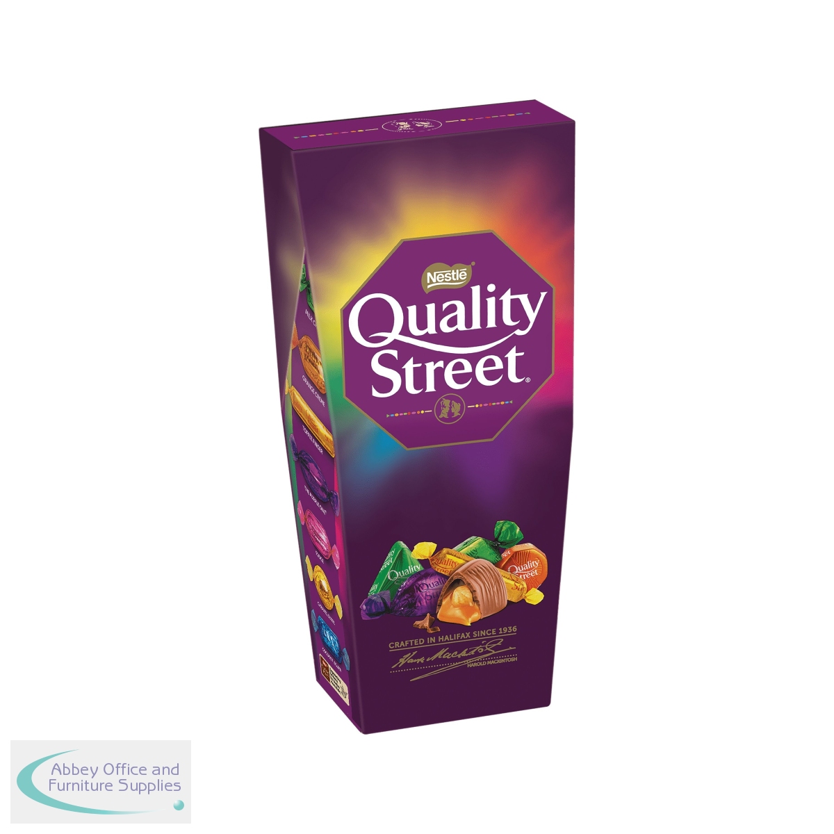This pack of Nestle Quality Street contains a delicious assortment of individually wrapped chocolates. Designed to suit a variety of tastes, the pack contains a range of fruit, nut, praline, fudge and caramel chocolates; perfect for sharing. Ideal for use as prizes, giveaways, or just for sharing with your colleagues. This pack contains 1 x 220g box.
