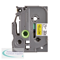 Designed for use with a wide variety of Brother P-Touch Printers, this labelling tape provides you with durable and easy to read labels, equally suitable for use in the office or at home. Boasting strong adhesive tape, allowing for you to easily attach your label to even rough or uneven surfaces, this black on yellow label cassette measures 18mm x 8m.