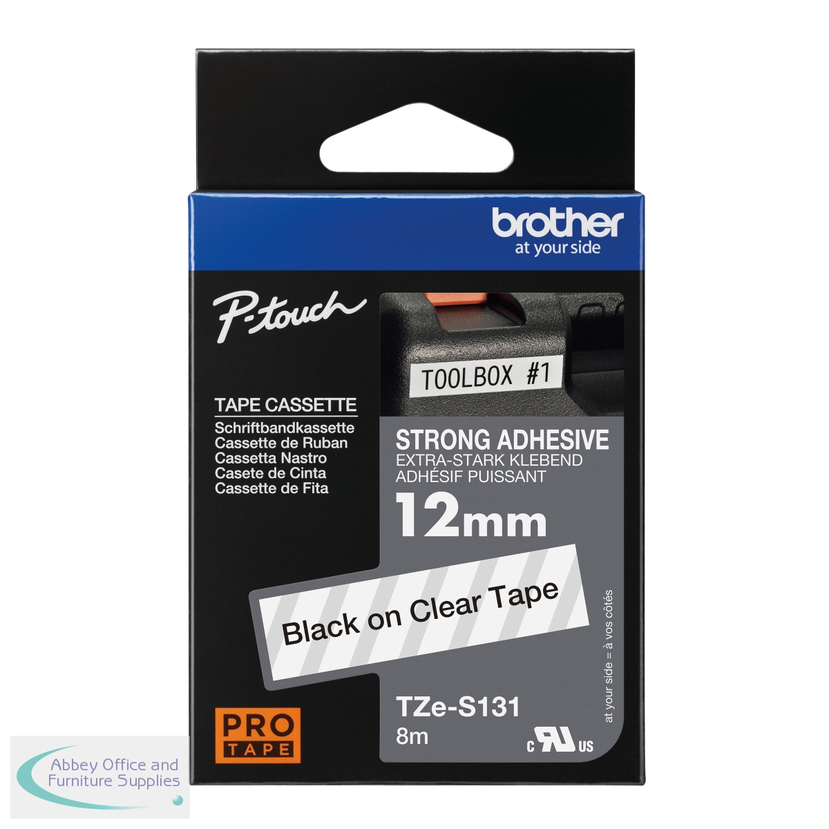 Designed for use with a wide variety of Brother P-Touch Printers, this labelling tape provides you with durable and easy to read labels, equally suitable for use in the office or at home. Boasting strong adhesive tape, allowing for you to easily attach your label to even rough or uneven surfaces, this black on clear label cassette measures 12mm x 8m.